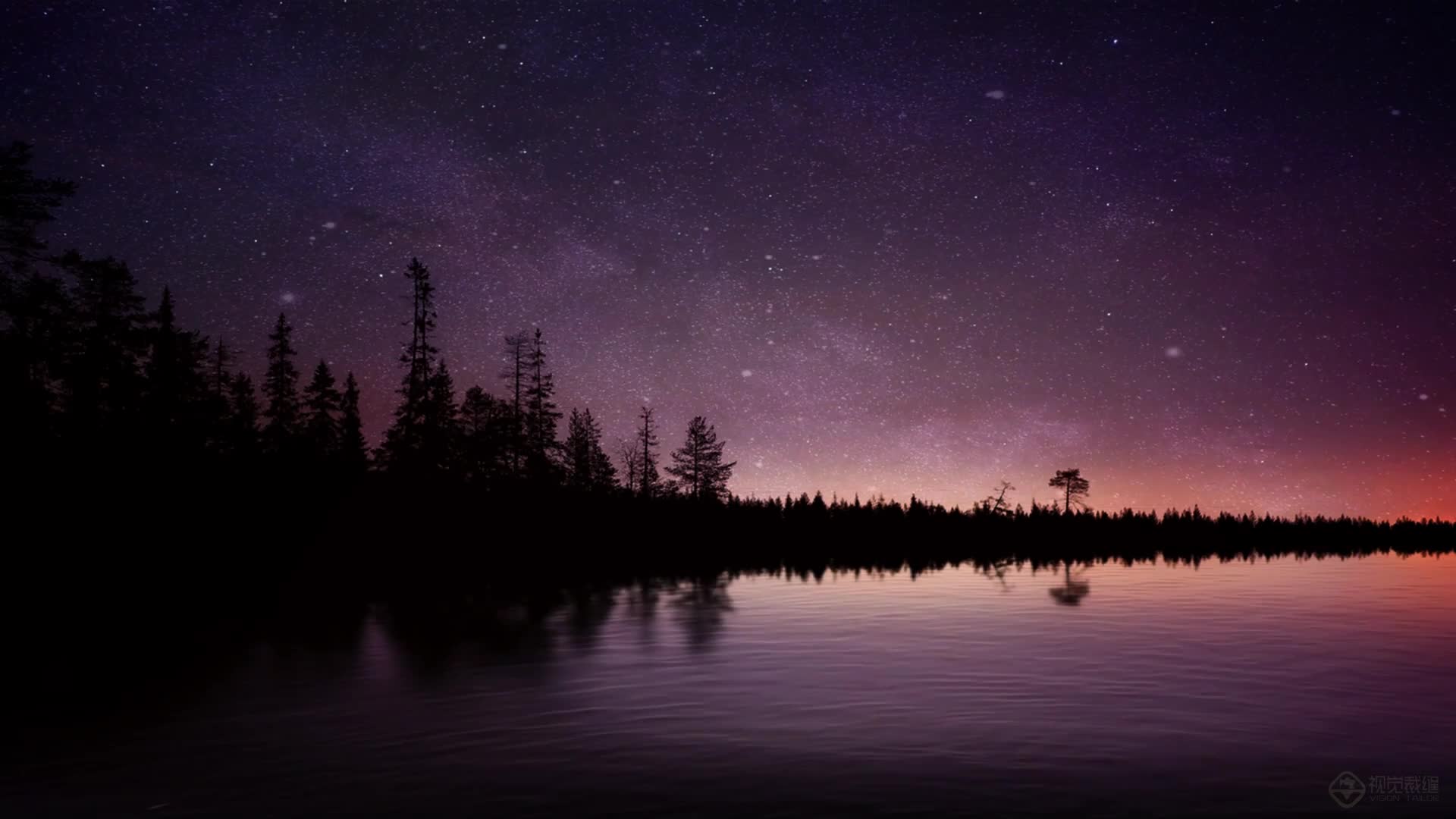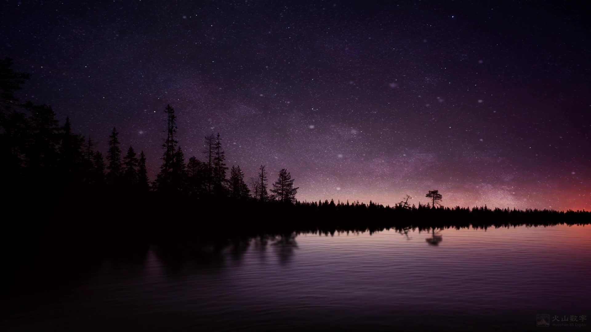 夜景 星空 粒子 星 树林 晚霞 意境 场景 K歌 背景简单 高级 舒缓 大气 悠闲(此素材仅供学习参考,禁止商用)