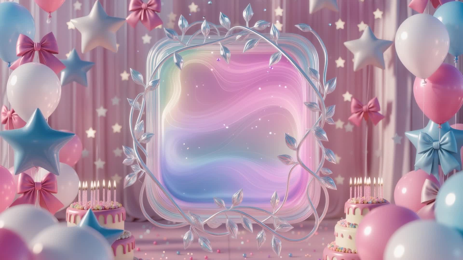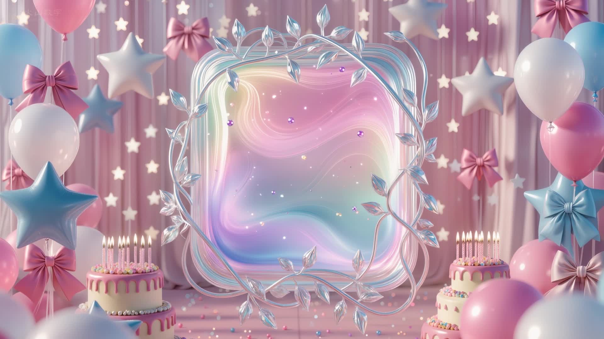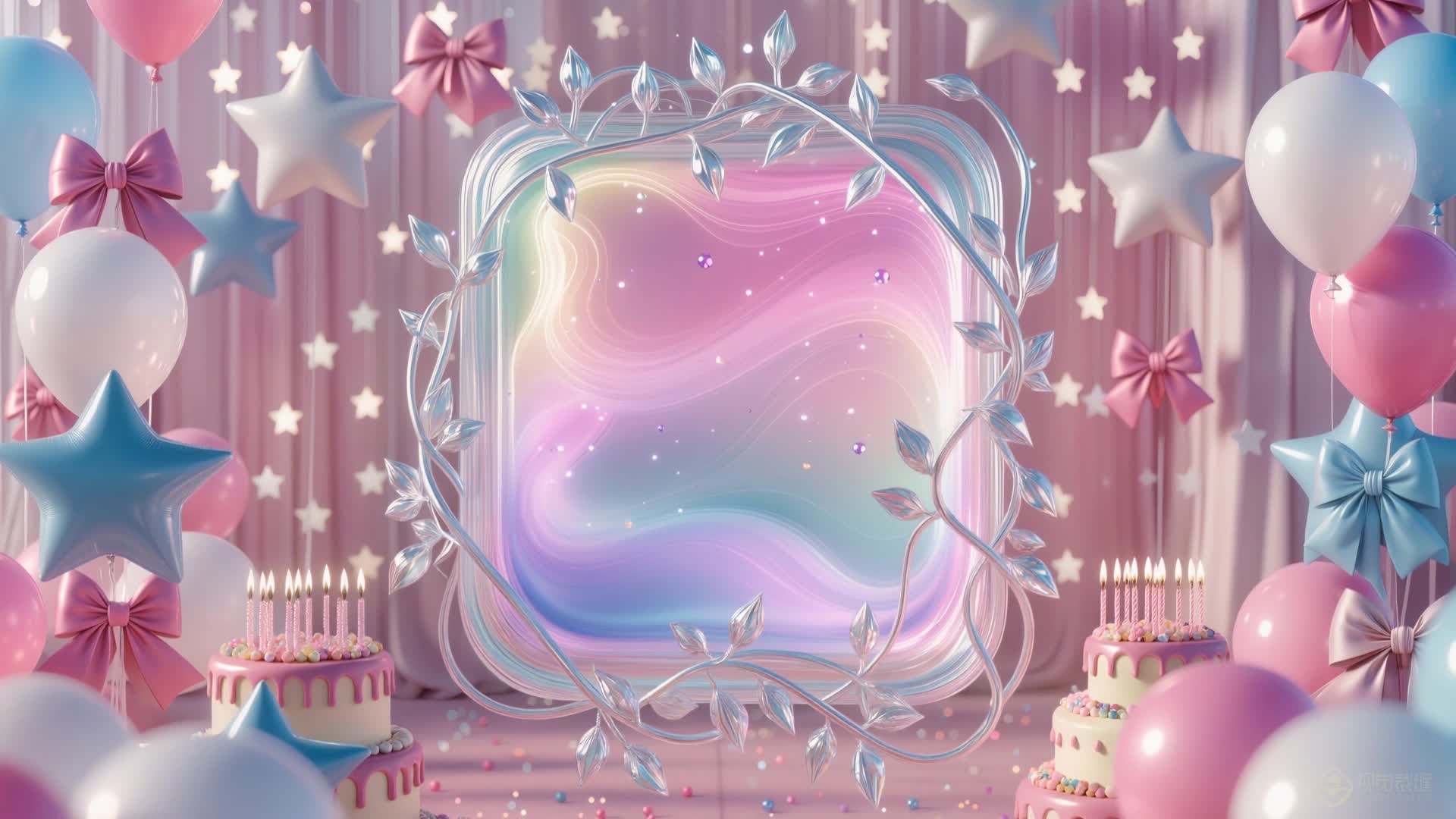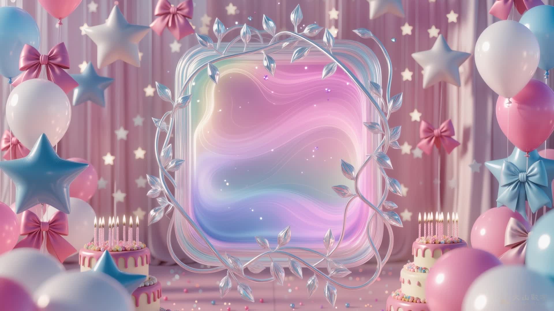 生日 粉色 搭配 场景 气球 浪漫 蛋糕 蜡烛 星星 蝴蝶结 彩虹 高级 舒缓 大气 悠闲(此素材仅供学习参考,禁止商用)