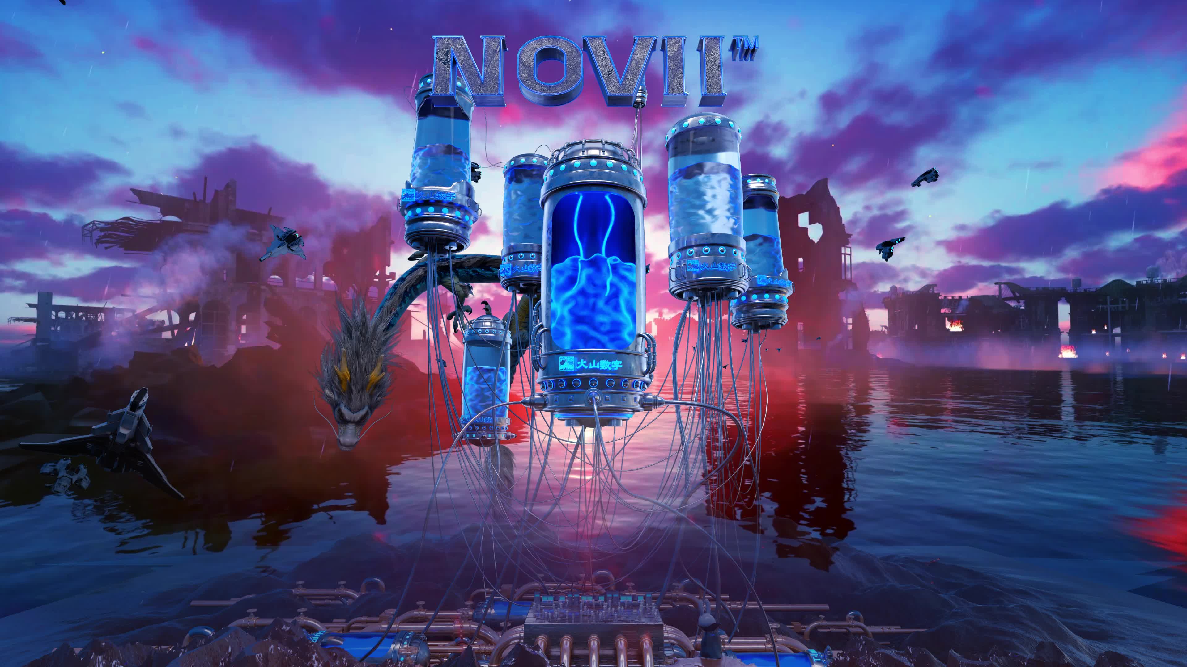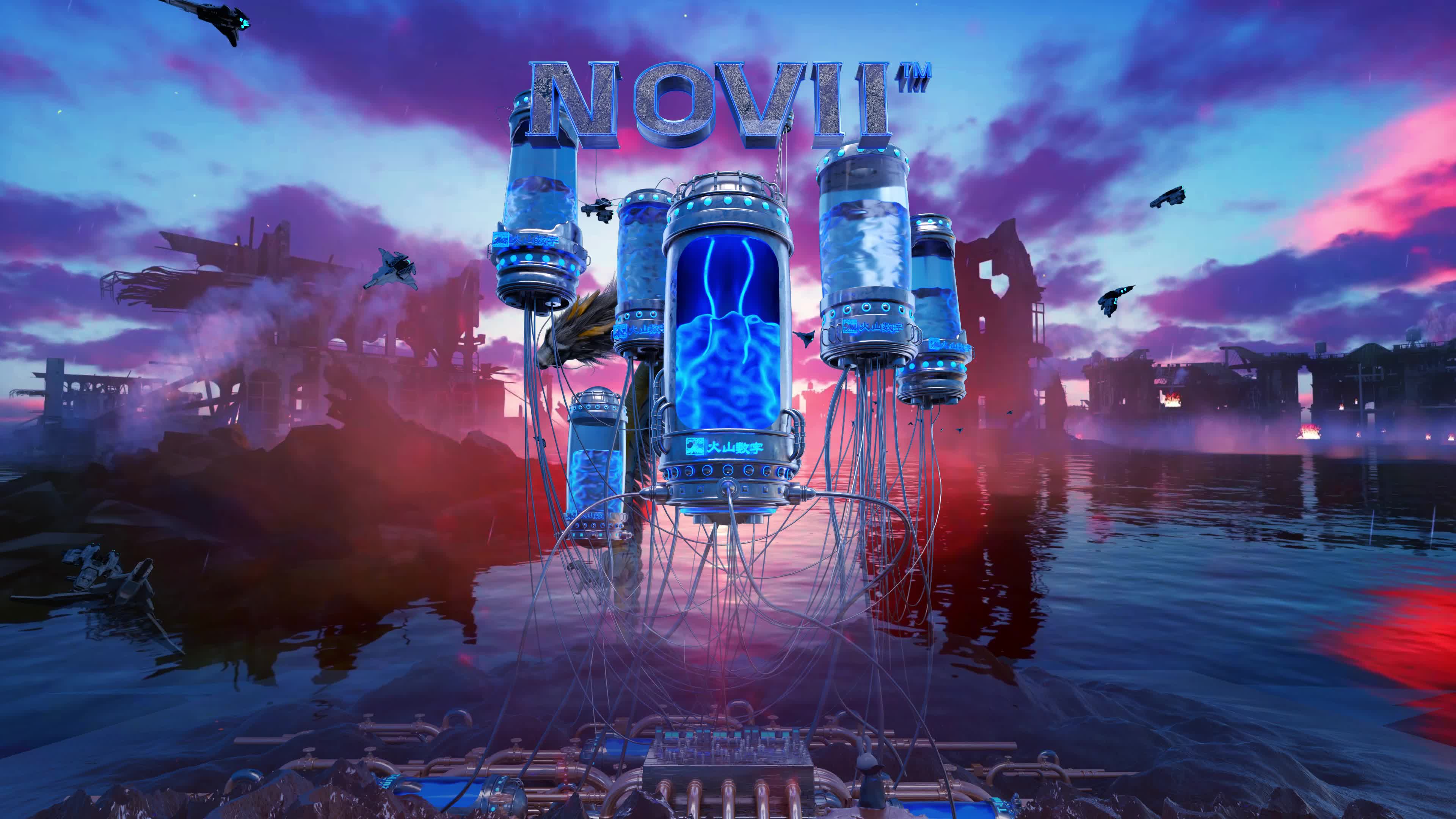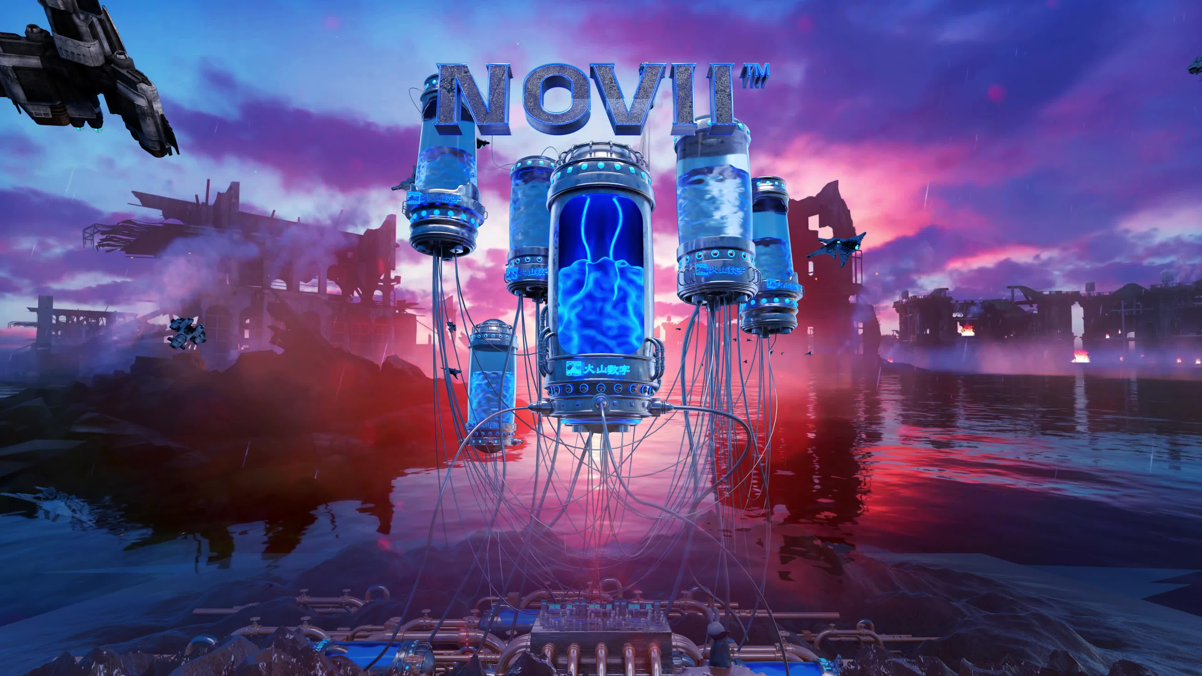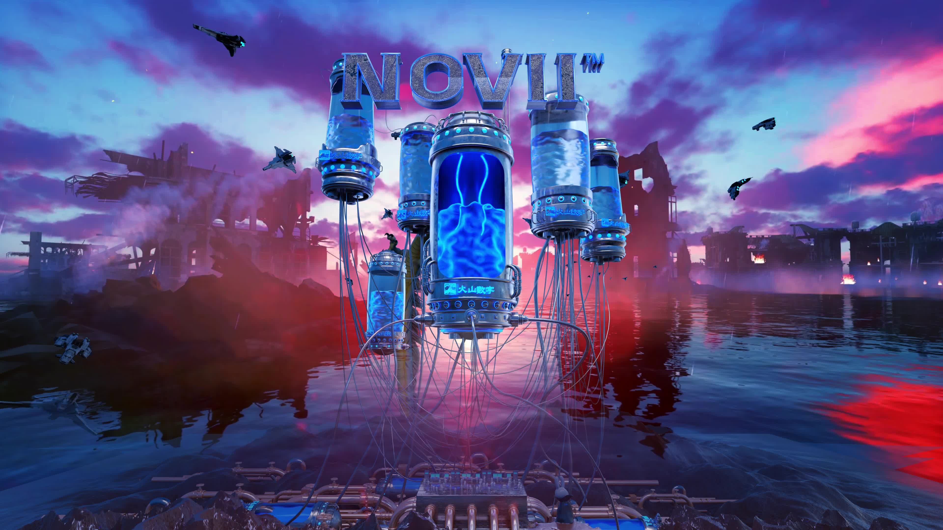定制大屏 蓝色 LOGO 空间 赛博 科技 未来 创意 水面 倒映 蓝色 粉色 天空 (此素材仅供学习参考,禁止商用)