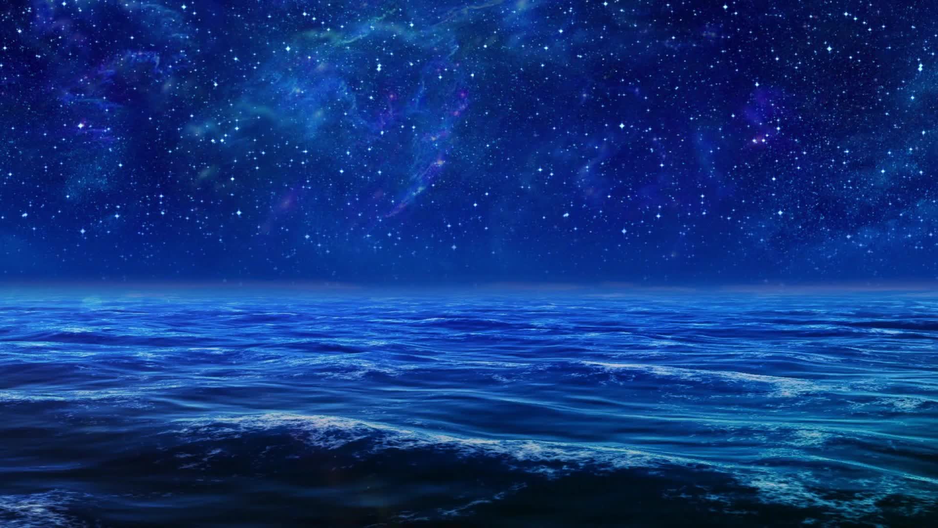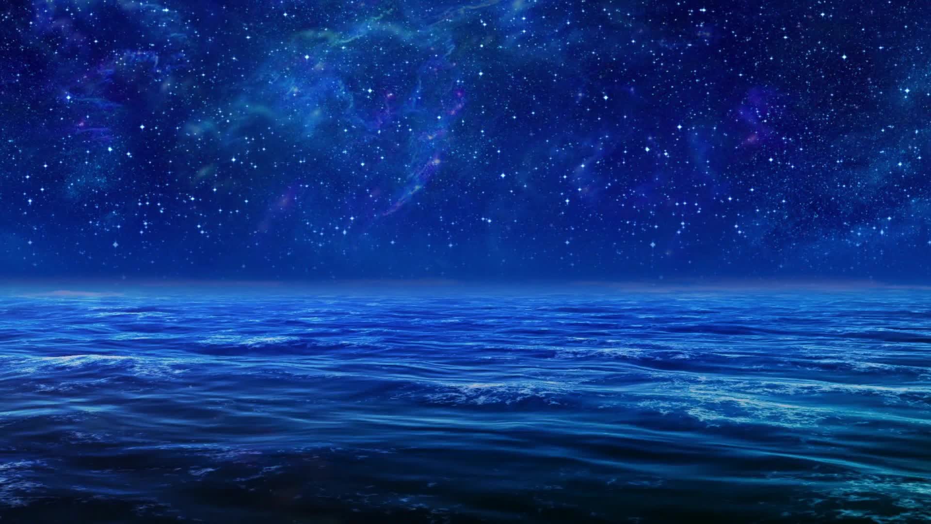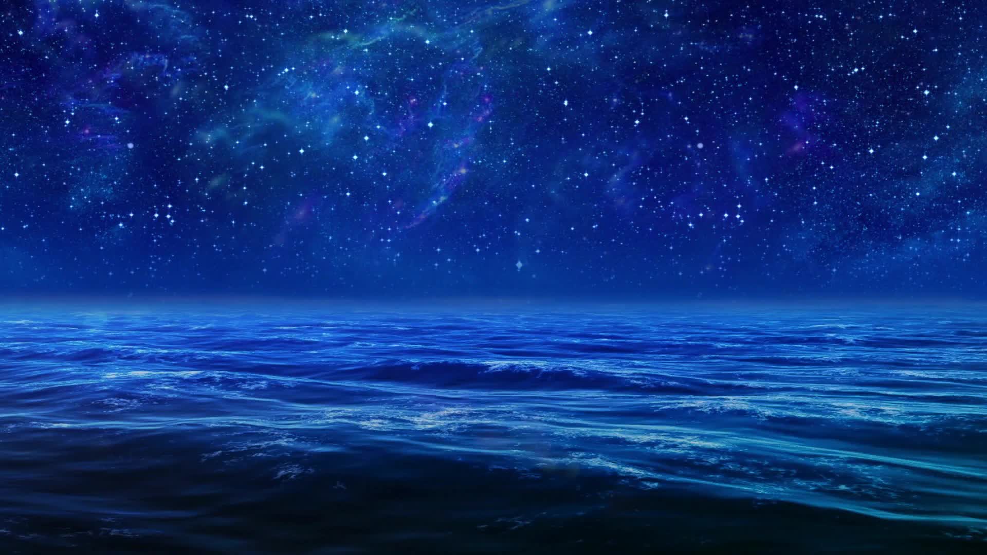 蓝色海 星空 场景 意境 抽象 艺术 水墨 背景简单 高级 舒缓 大气 悠闲(此素材仅供学习参考,禁止商用)