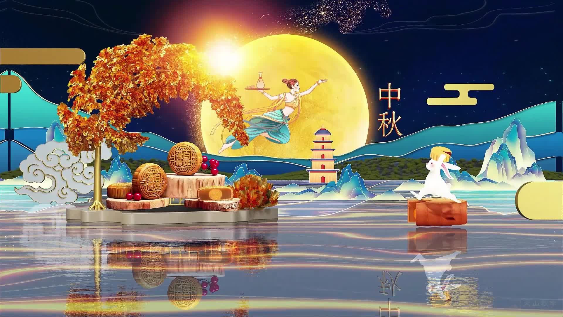 中秋节 节日 团圆 金色 传统节日 嫦娥 玉兔 中秋 圆月 高级 大气 金属感(此素材仅供学习参考,禁止商用)