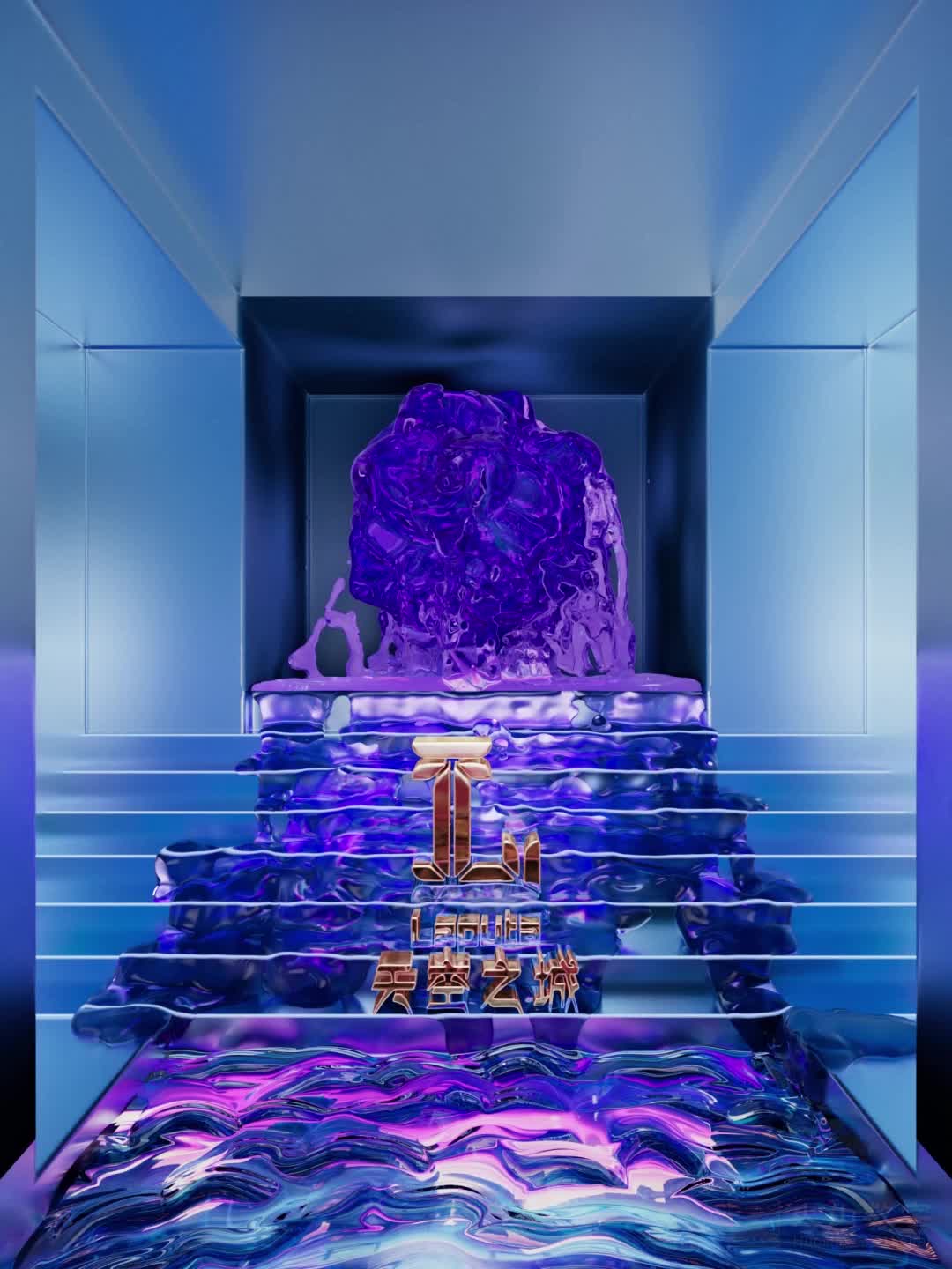 空间 透明 质感定制 LOGO 紫色 水流 流体 大气 高级 氛围 公区 竖屏 不规则 大屏 (此素材仅供学习参考,禁止商用)