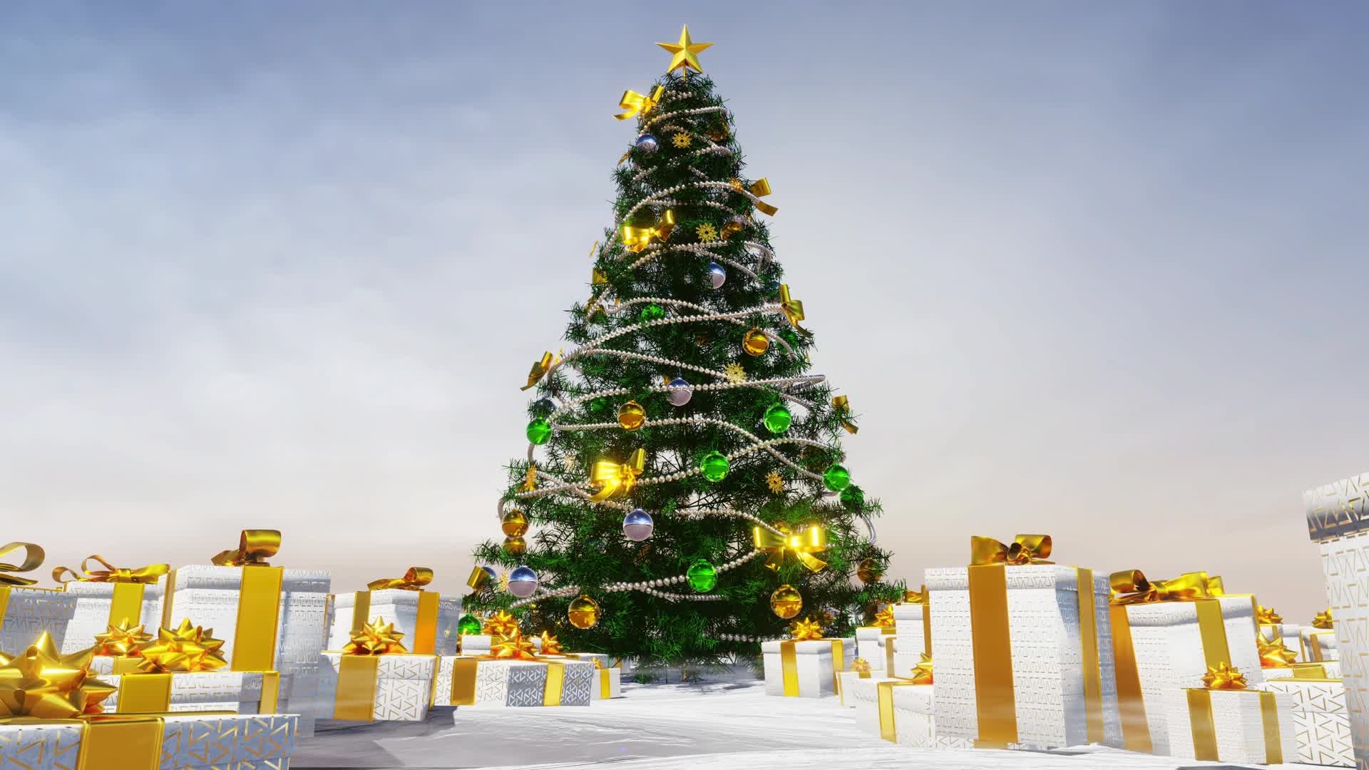 圣诞节 圣诞 礼盒 礼物 雪花 铃铛 圣诞帽 圣诞树 场景 氛围 节日 搭配 艺术 大屏 (此素材仅供学习参考,禁止商用)