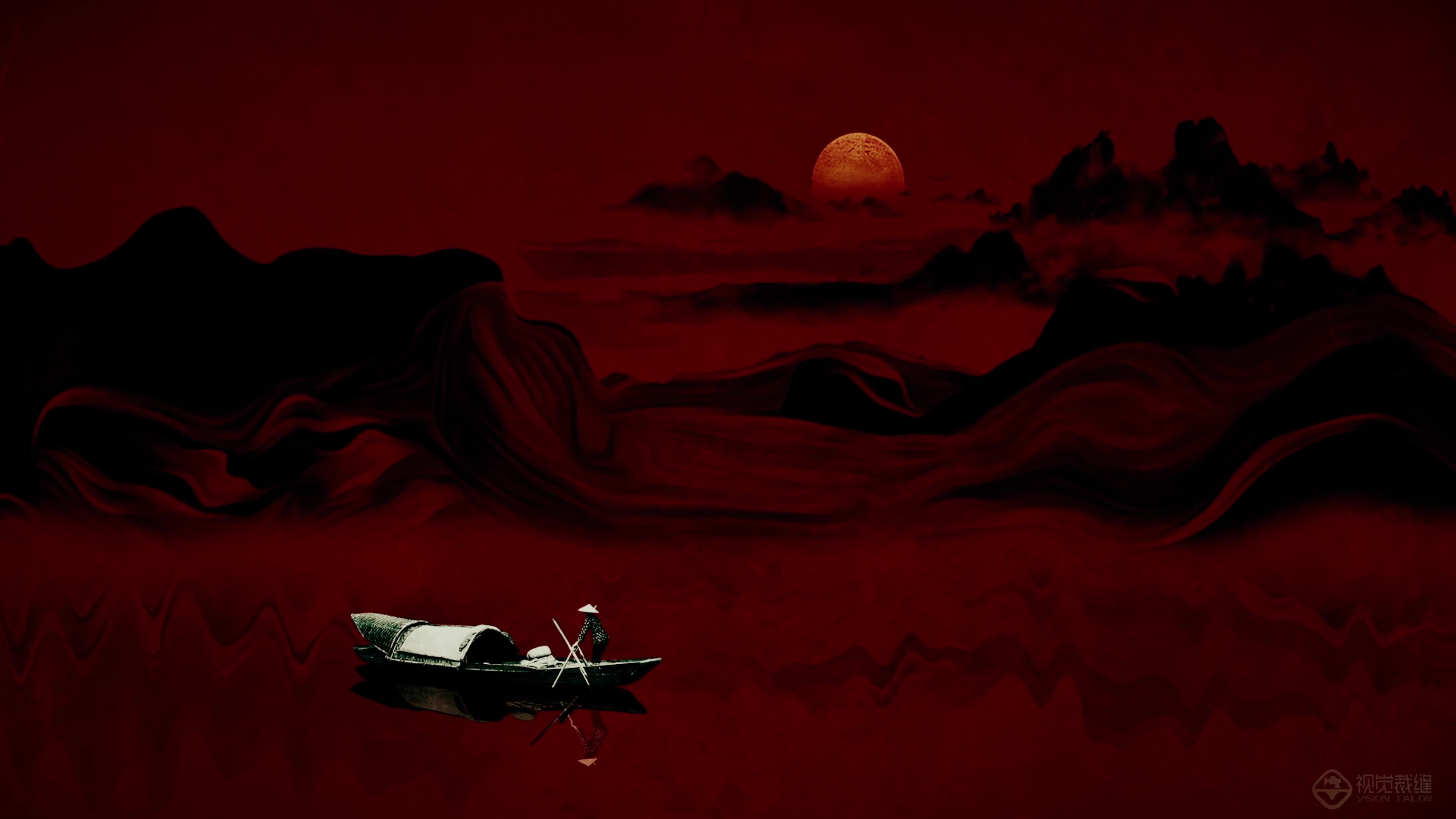 古风 打碟 大屏 DJ 大屏 律动 氛围 酒吧 国风 水墨 山水 红色 大气 悠闲(此素材仅供学习参考,禁止商用)