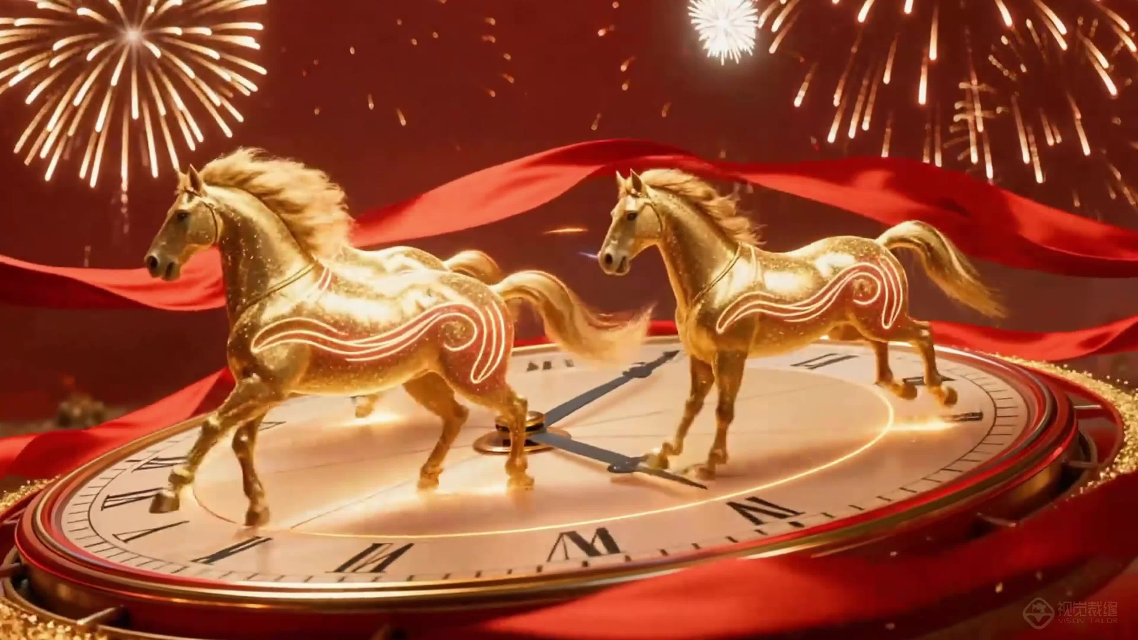 金 金马 马年 马群 新年 跨年 喜庆 舞狮 汤圆 烟花 灯笼 节日(此素材仅供学习参考,禁止商用)