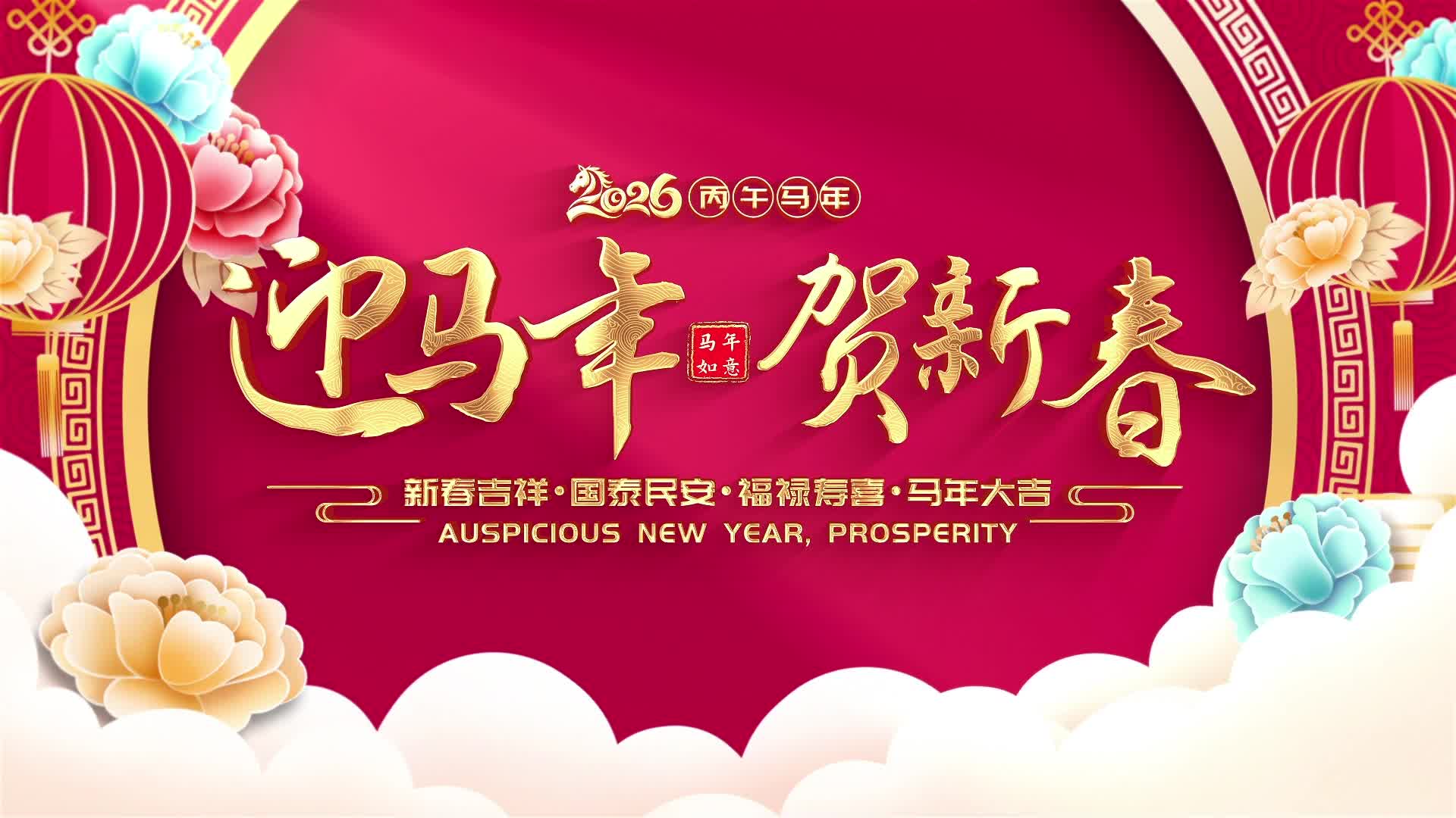 新年 马年 节日 喜庆 红色 2026 新年 祥云 年俗 看花灯 欢度新年 好运来 好日子 活泼 欢快气氛(此素材仅供学习参考,禁止商用)