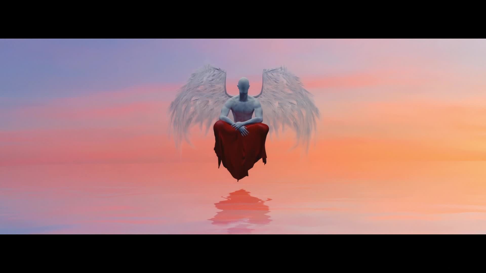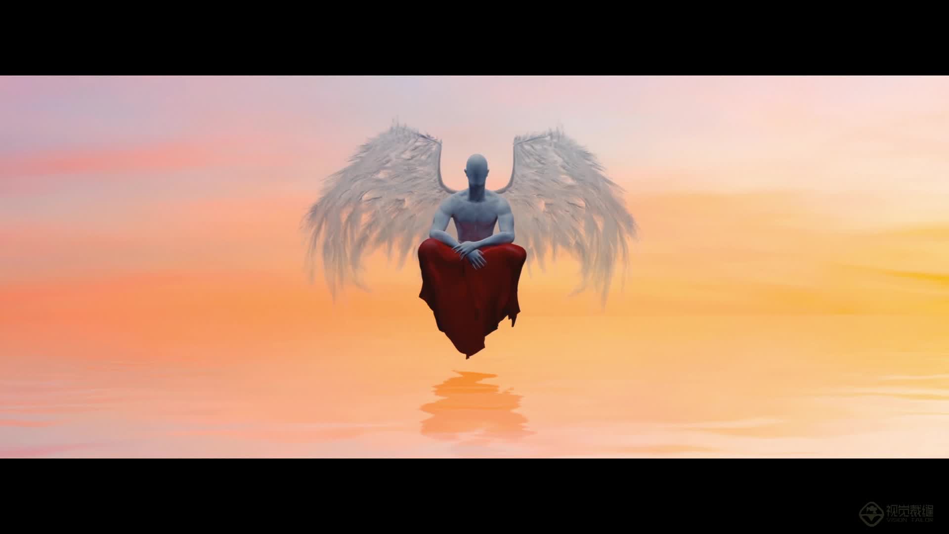 唯美 意境 特效 待客 静谧 白色 人物 粉色 倒映 水面 渐变 浪漫(此素材仅供学习参考,禁止商用)