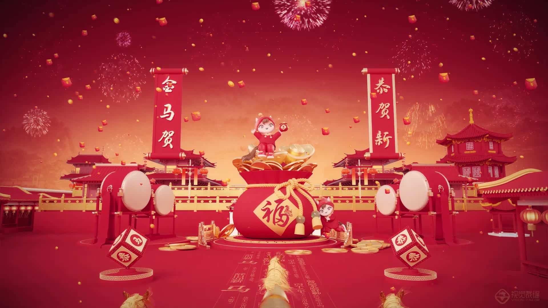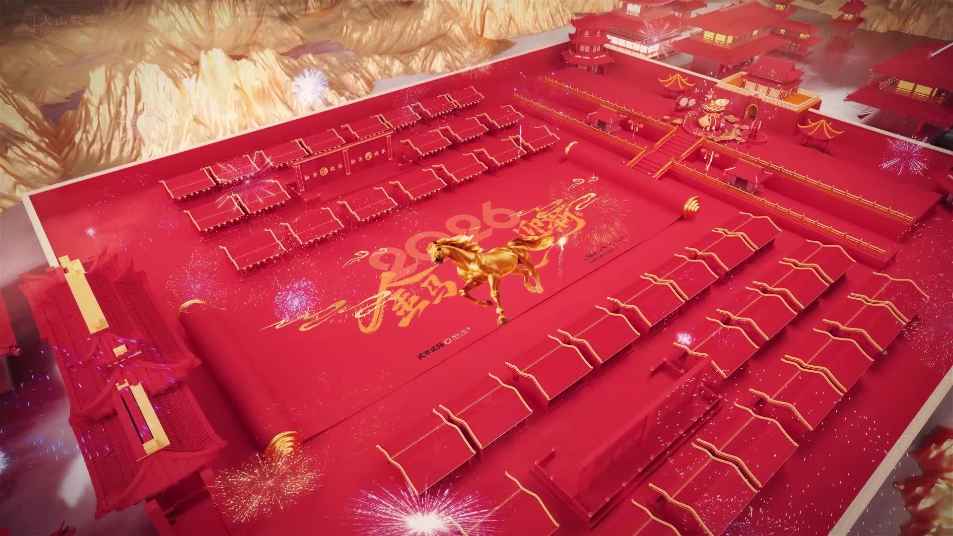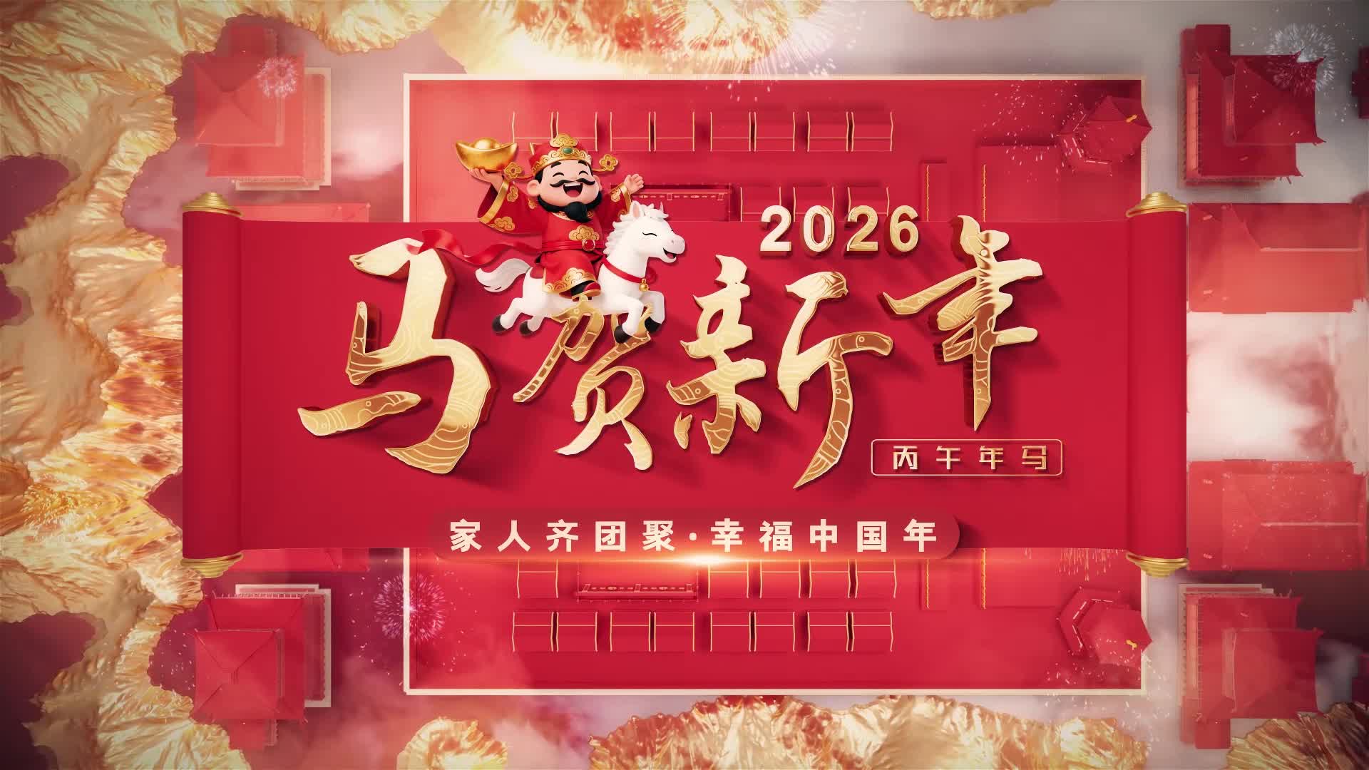 元旦 时钟 跨年新年 2026 新年 大年初一 喜庆 红色 绸缎 绸带 艺术 大屏 (此素材仅供学习参考,禁止商用)