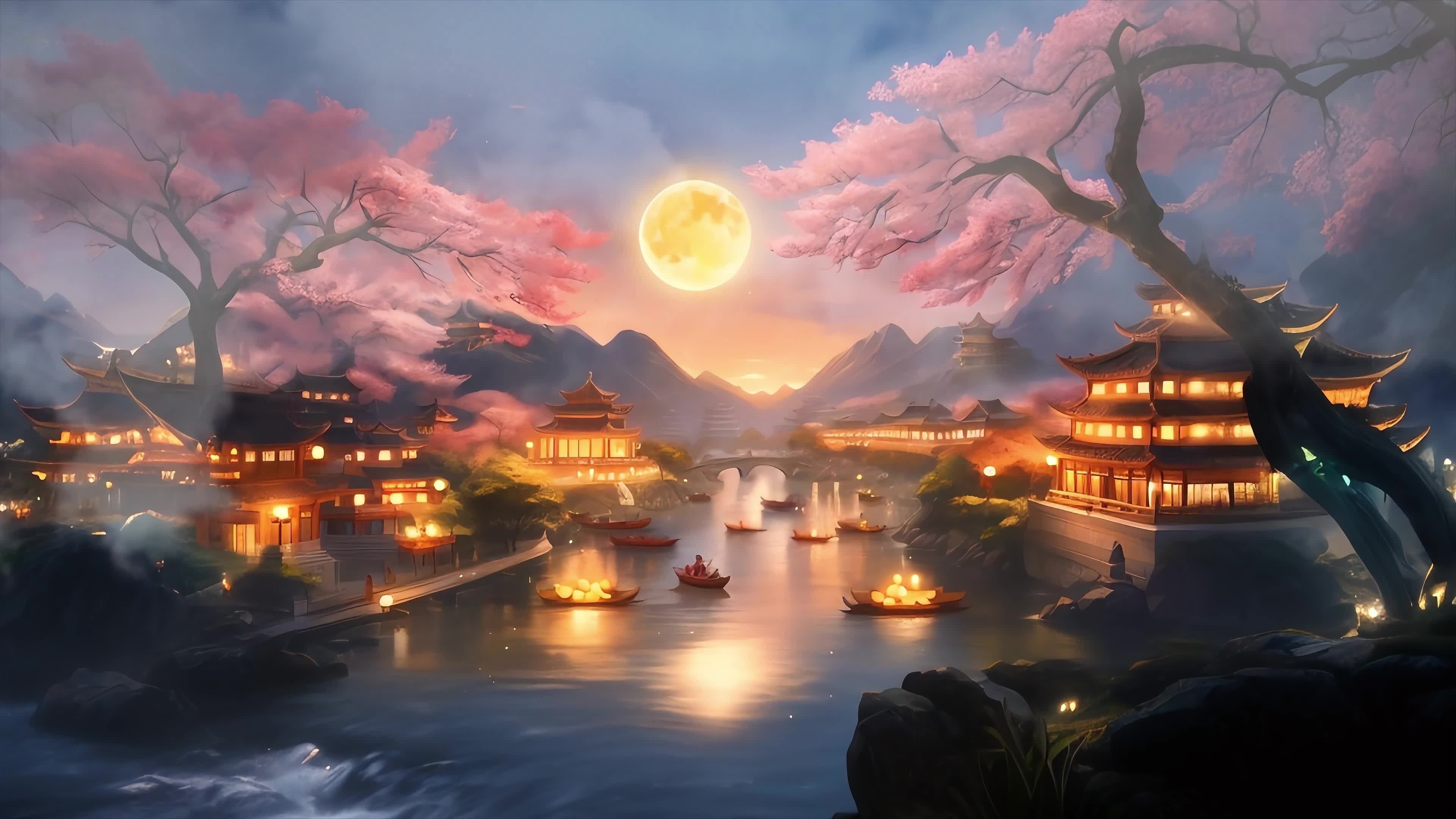 中秋 节日 氛围 竖屏 搭配 古风 梅花 舞台 屏风 古典 场景 KTV 主屏 绿色 传统节日 灯笼(此素材仅供学习参考,禁止商用)