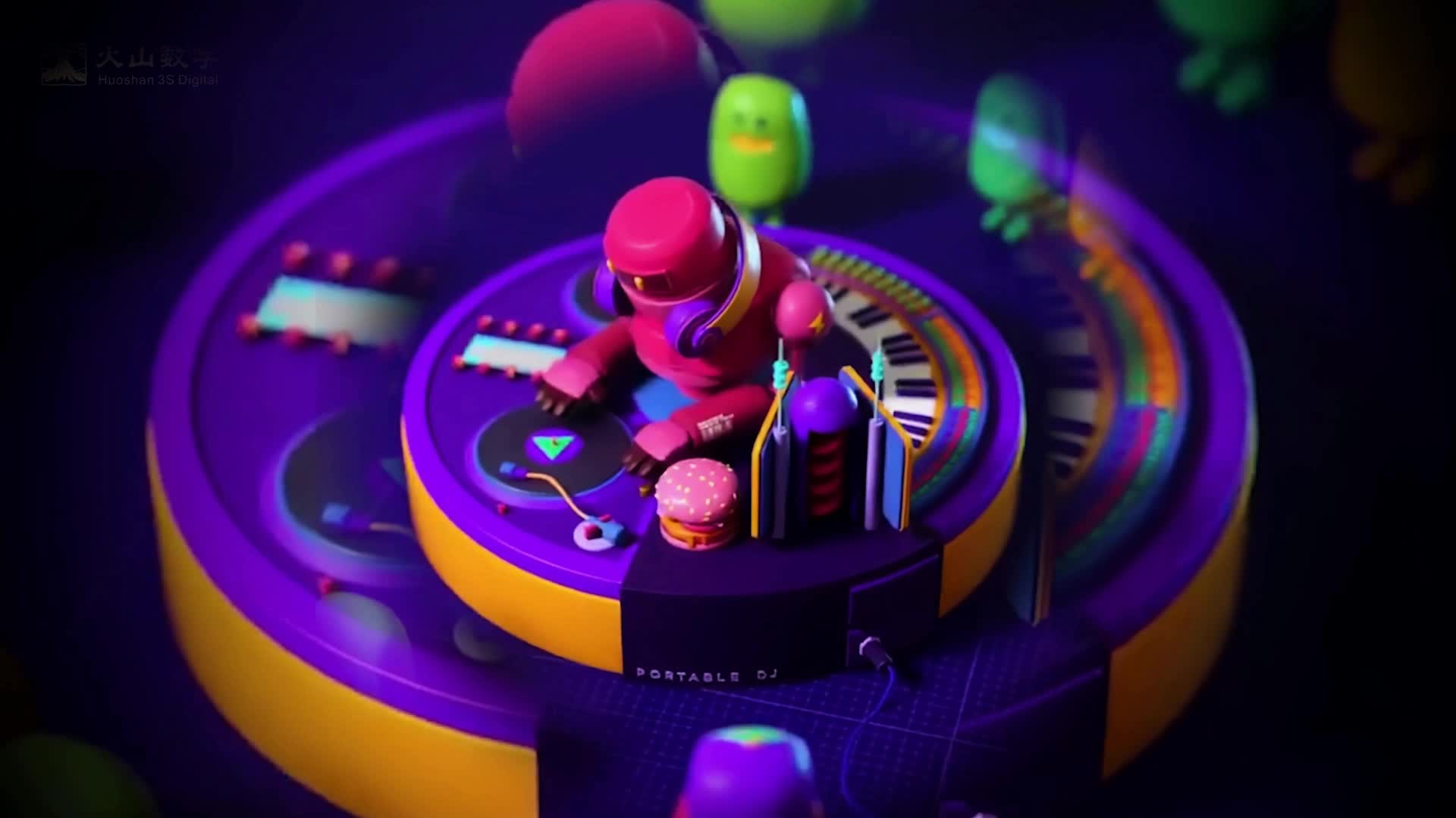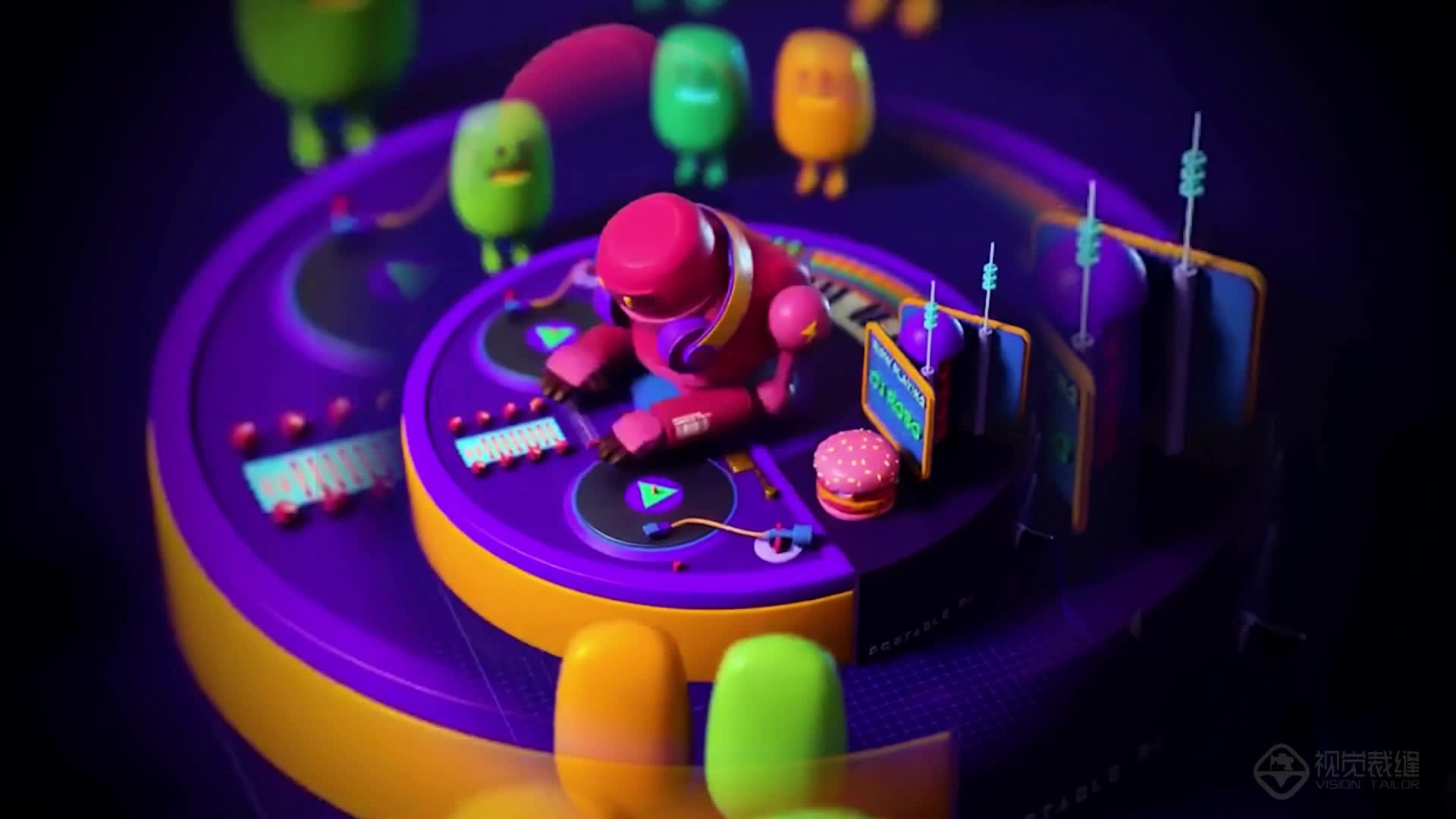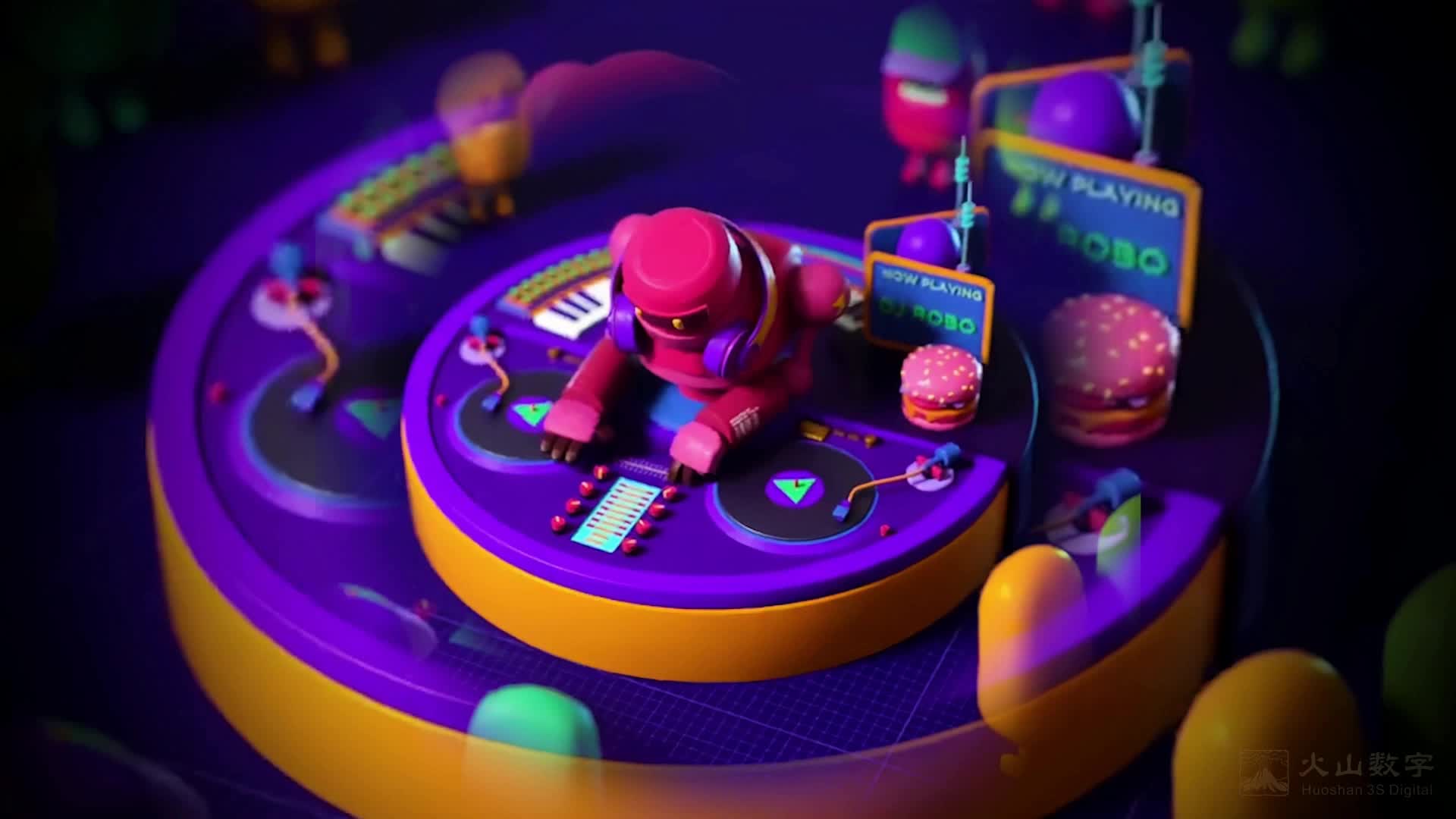 酒吧 大屏 场景 可爱 音乐节 打碟 卡通 搭配 热场 dj 紫色 活力 律动(此素材仅供学习参考,禁止商用)