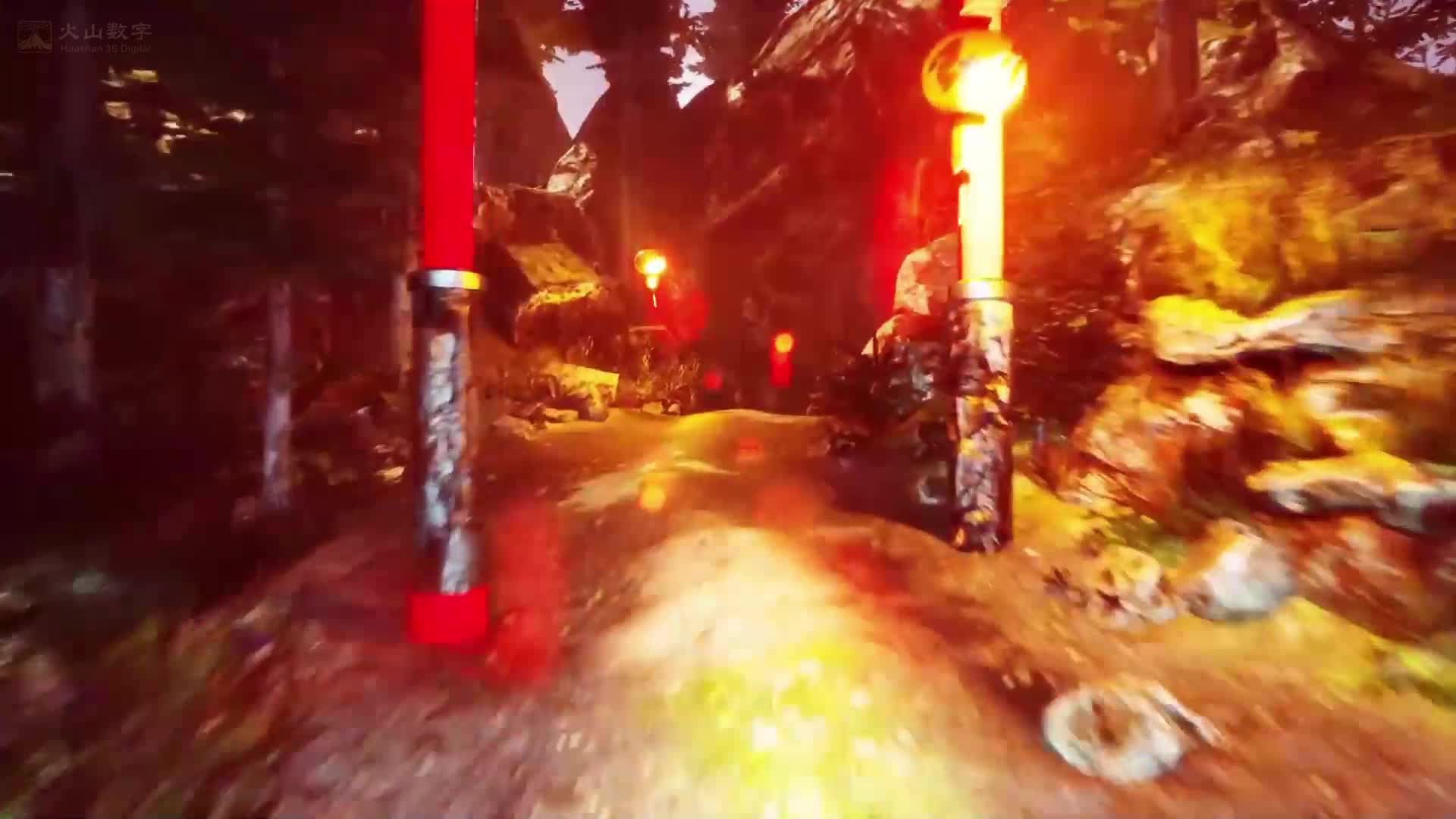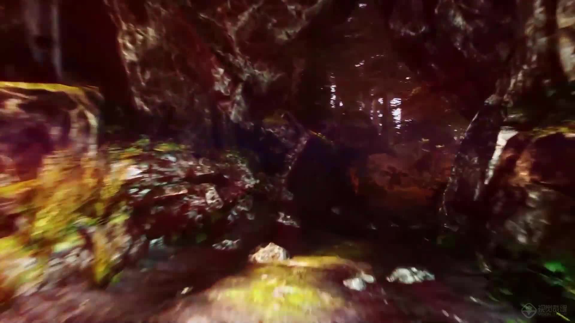3D 穿梭 动感 岩石 森林 迷雾 红色 绿色 舒缓 大气 悠闲(此素材仅供学习参考,禁止商用)
