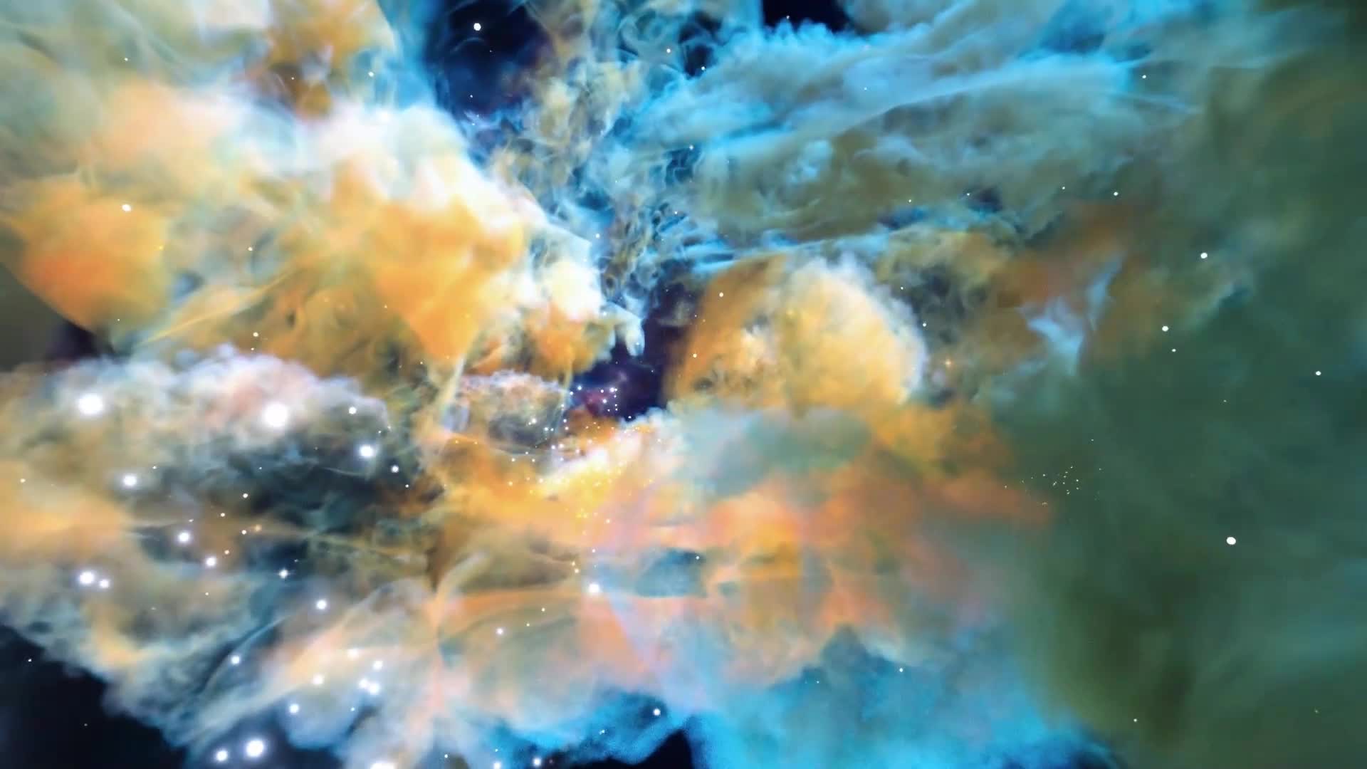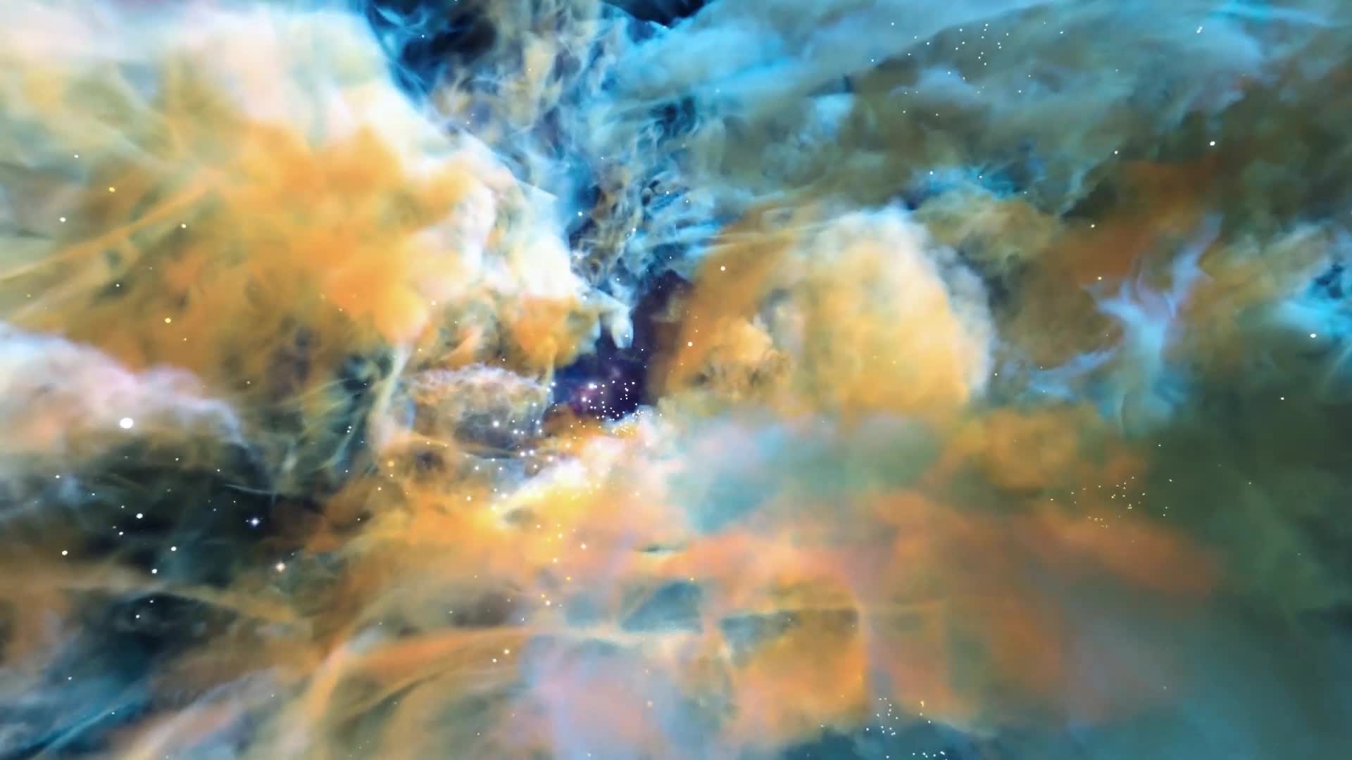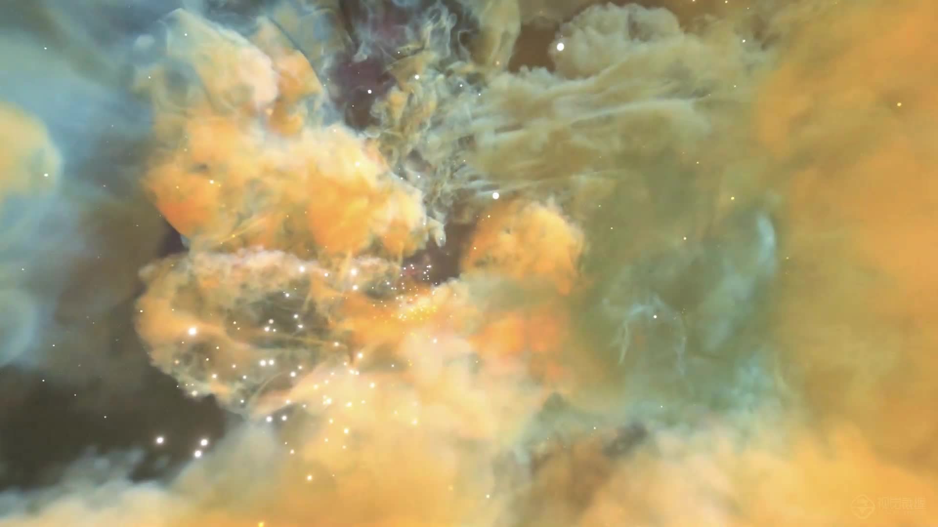 3D 穿梭云层 云雾 金色 黄色 蓝色 天空 舒缓 大气 悠闲(此素材仅供学习参考,禁止商用)