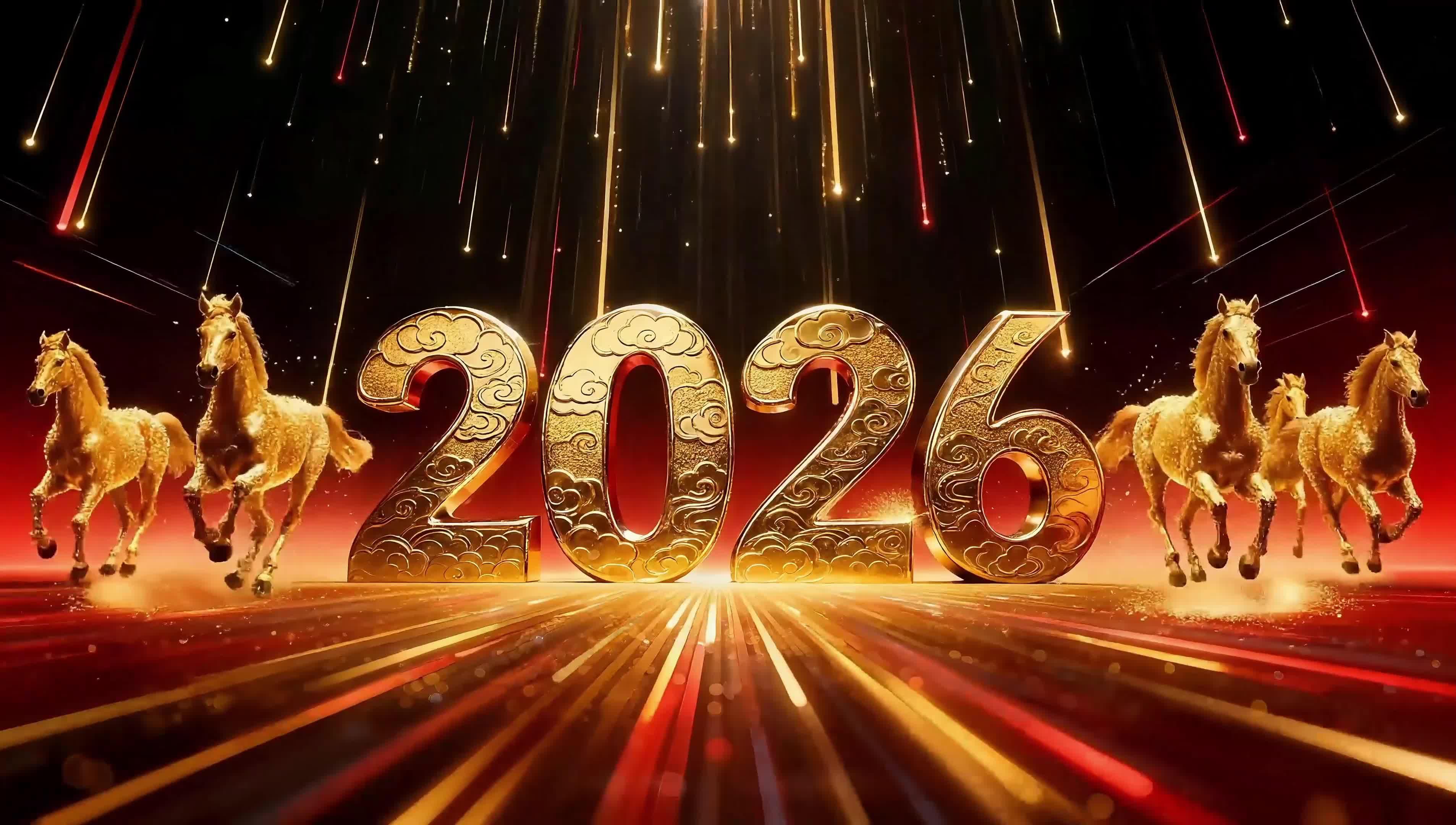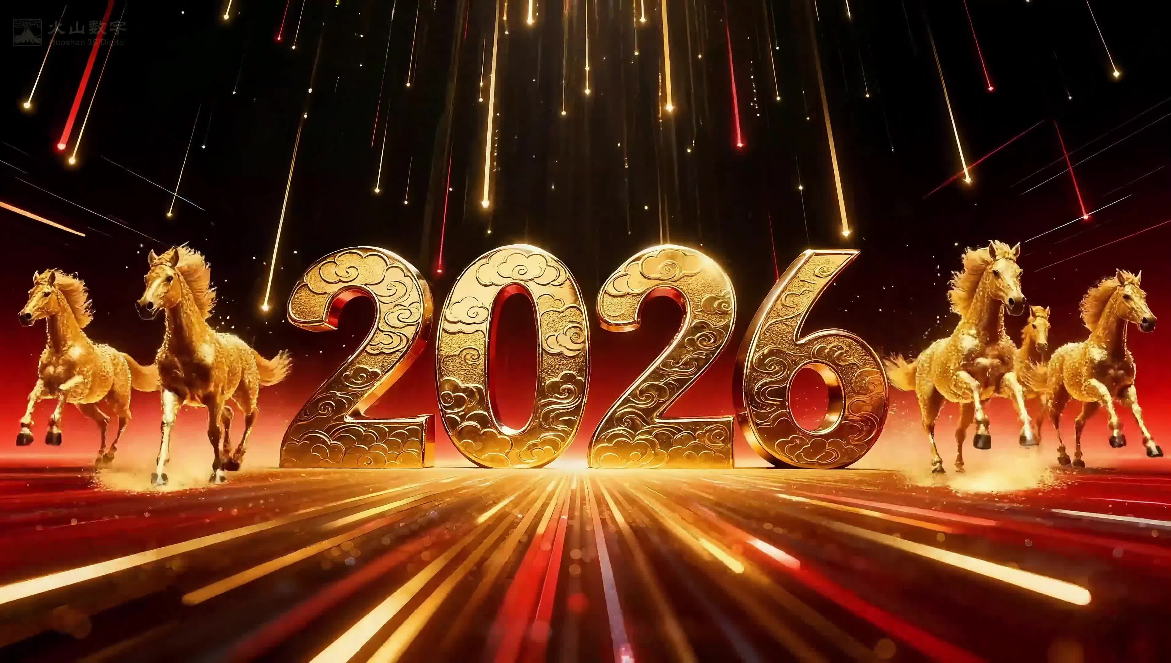 跨年 倒计时 红色 金色 马年 元旦 新年 春节 喜庆 高级 大气 金属感(此素材仅供学习参考,禁止商用)