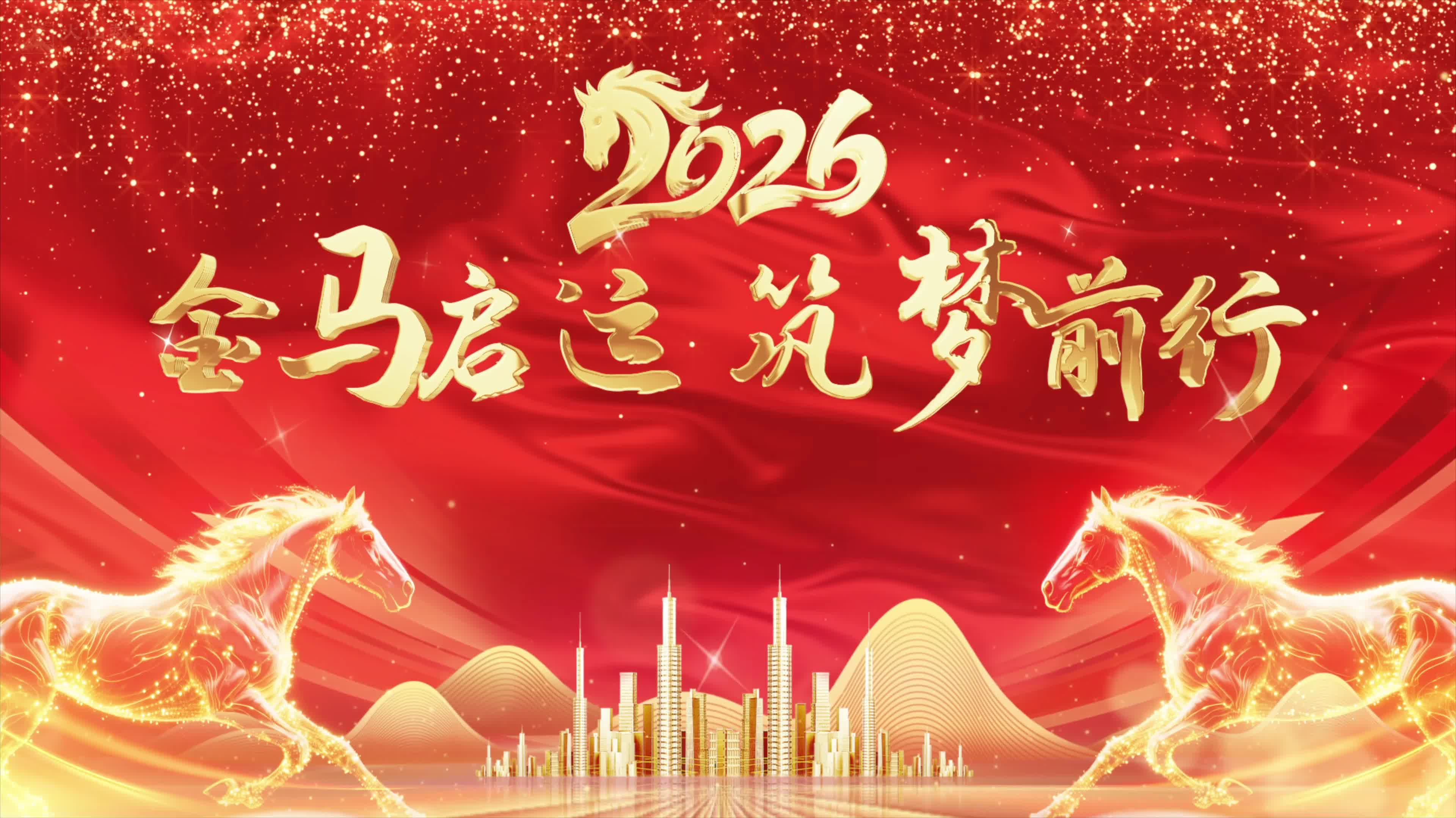 金色 马 马年 元旦 2026 年会 大屏 大气 开场 元旦 节日新年 高级 舒缓 大气 悠闲(此素材仅供学习参考,禁止商用)
