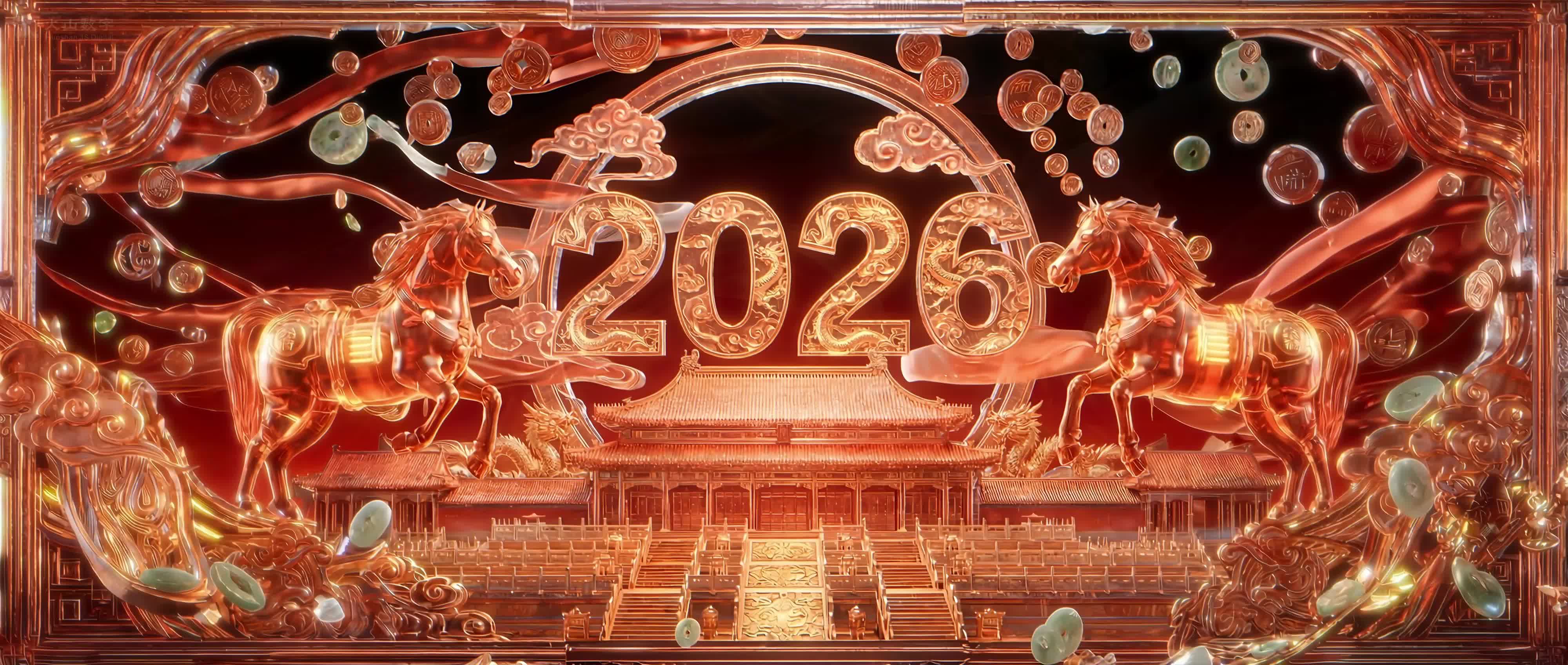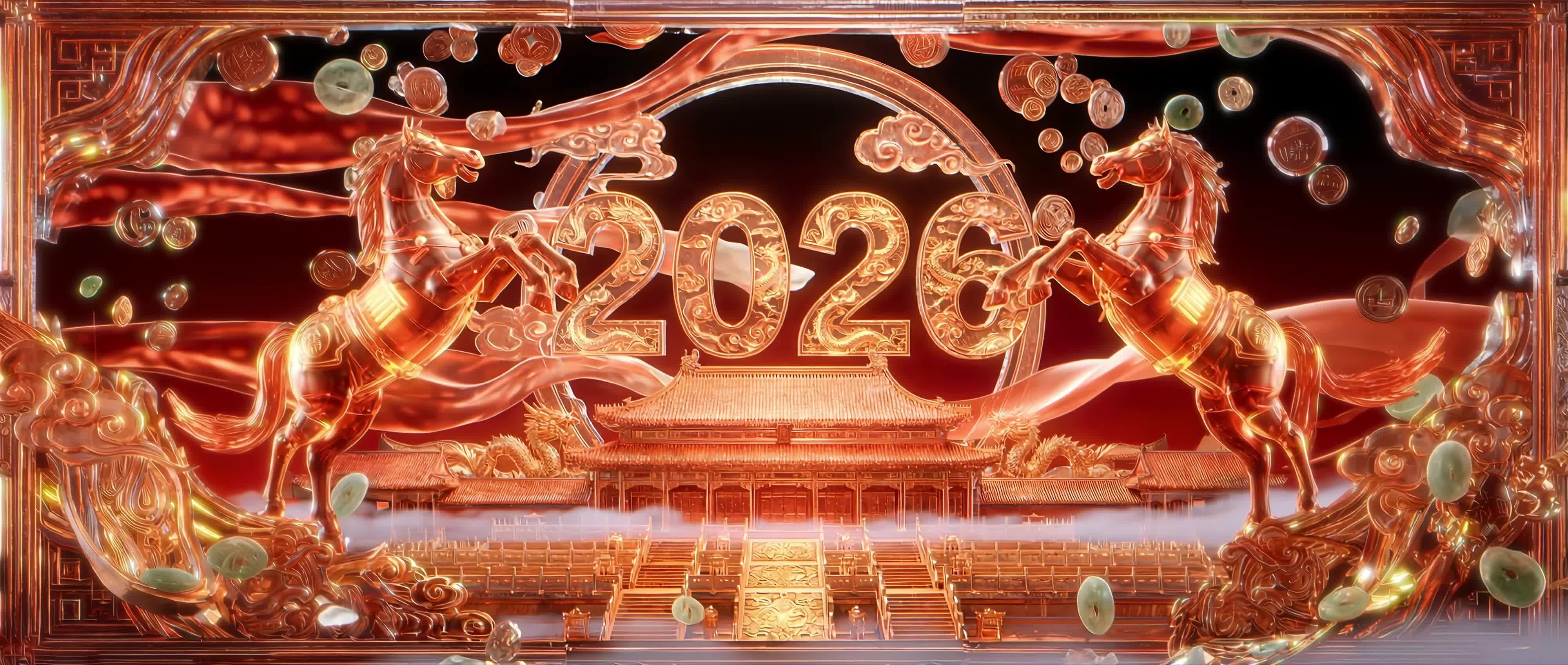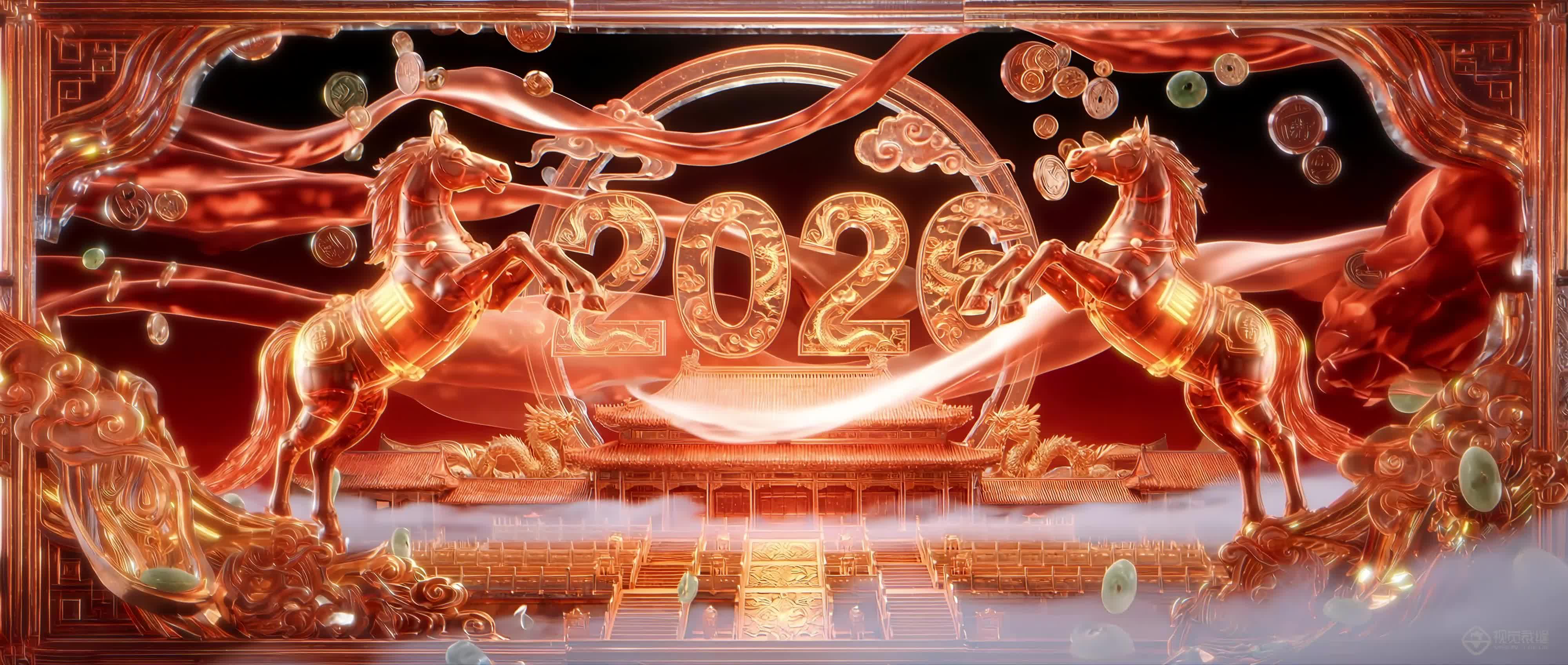 马年 新年 节日 金色 节庆 喜庆 温和 温柔 艺术 烟花 灯笼 节日(此素材仅供学习参考,禁止商用)
