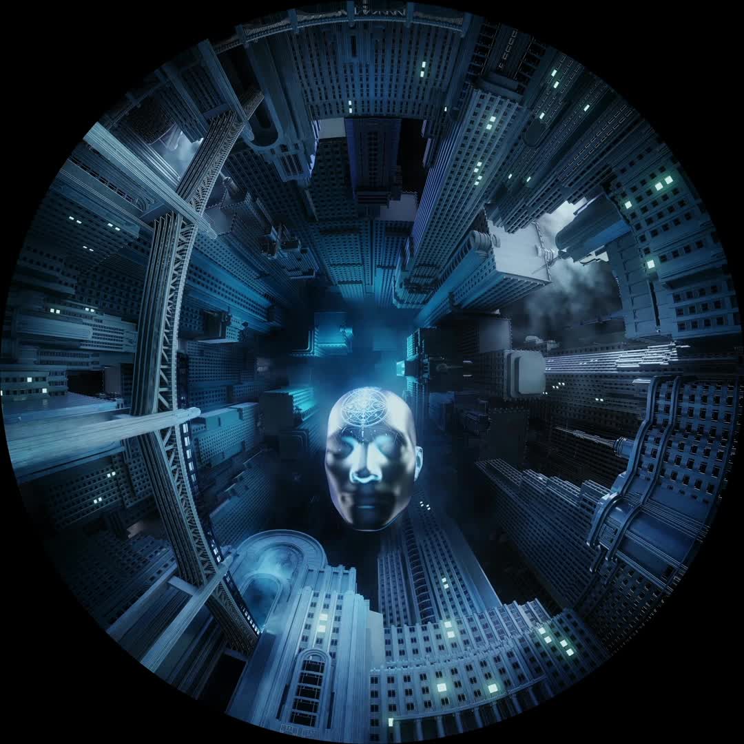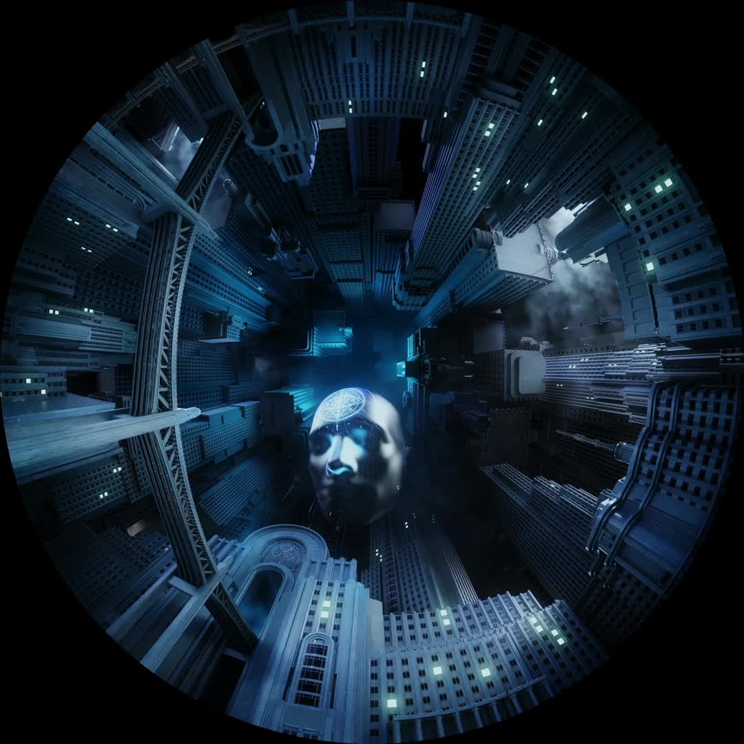 裸眼 圆屏 圆柱 都市 城市 现代化 环形 球体 蓝白色 黑色 神秘 悠闲 温情 轻松(此素材仅供学习参考,禁止商用)
