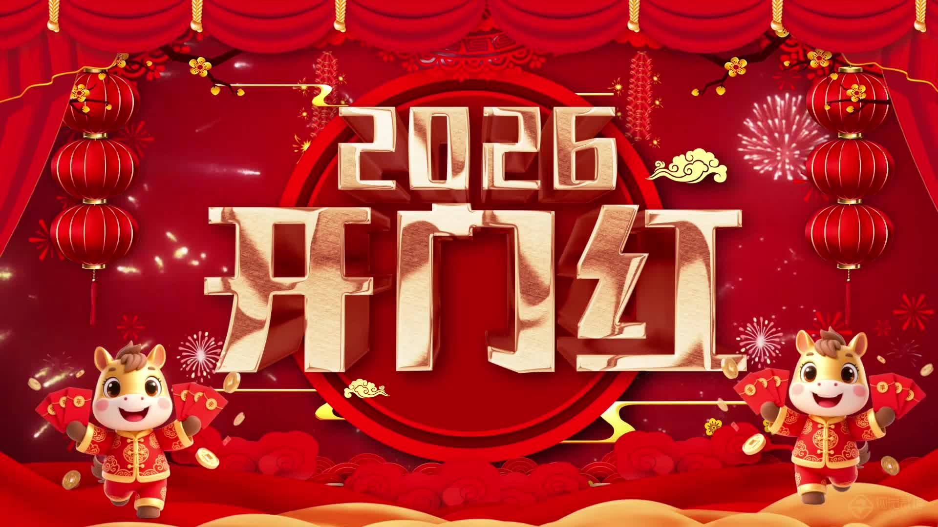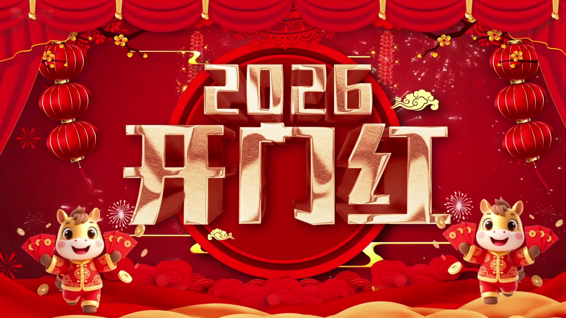 节日 新年 开门大吉 喜庆 红色 2026 新年 元旦 好运来 好日子 活泼 欢快气氛(此素材仅供学习参考,禁止商用)