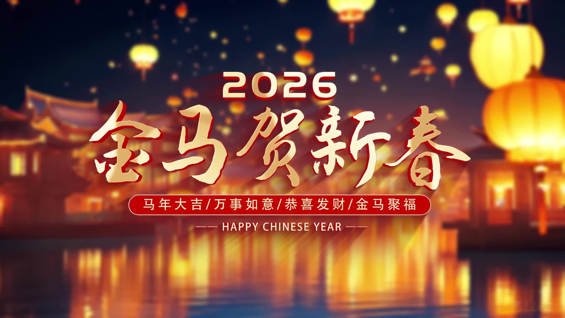 新春 节日 空间 场景 金色 背景 马年 灯笼 喜庆 2026 新年祝福 春节祝福 2026马年 金色春联 福字 满屏(此素材仅供学习参考,禁止商用)