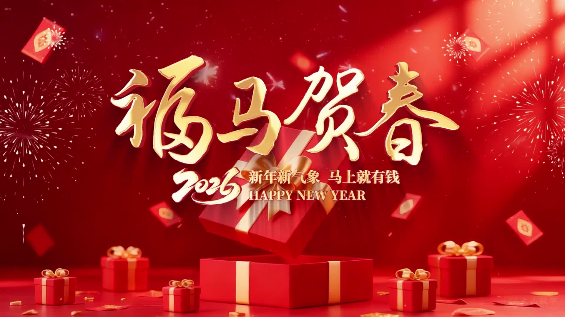 新春 节日 空间 场景 金色 背景 马年 喜庆 2026 新年祝福 春节祝福 2026马年 金色春联 福字 满屏(此素材仅供学习参考,禁止商用)