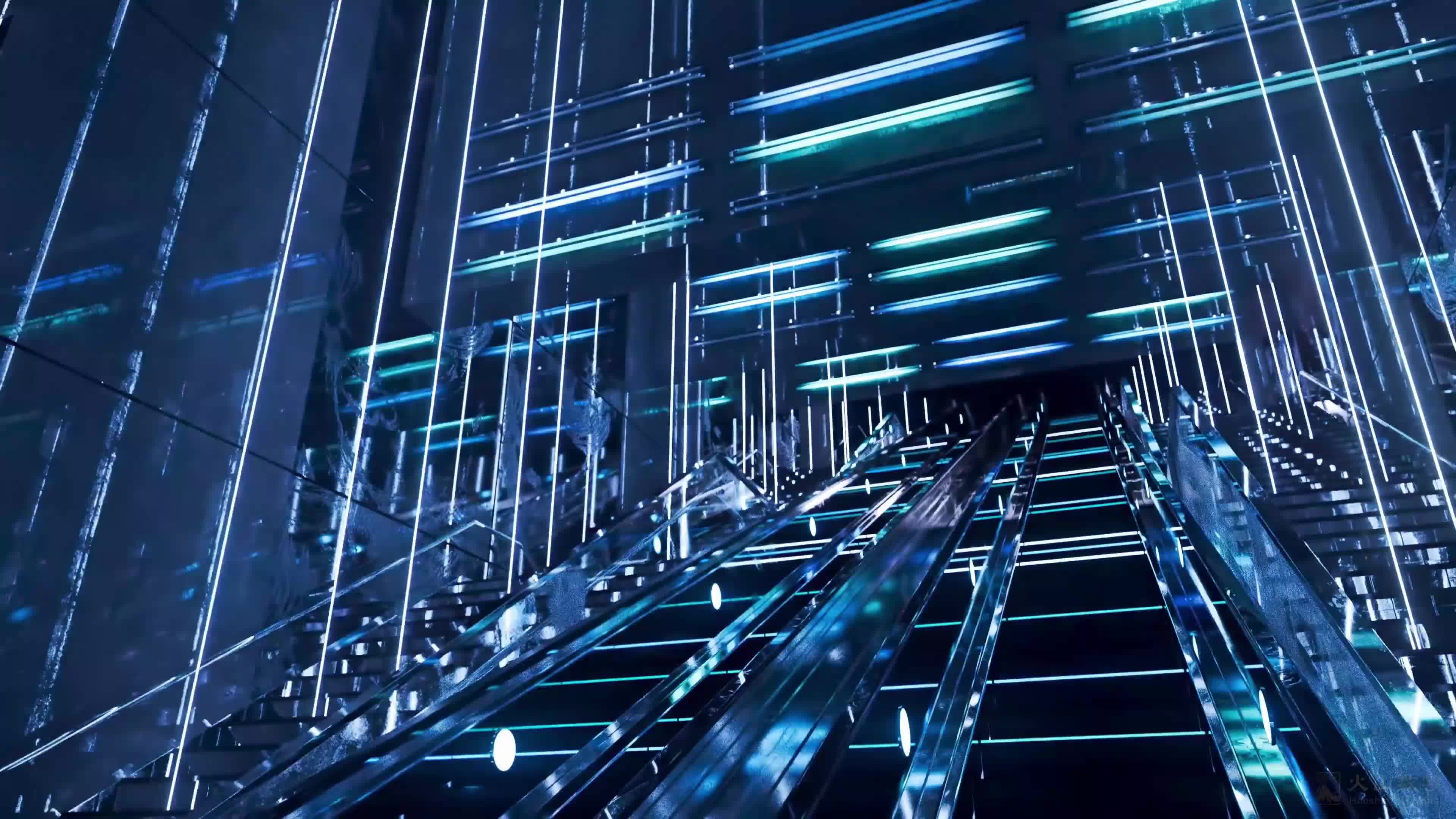 电梯 空间 卡点 光线 线条 艺术 蓝色 舞美 轻节奏 快节奏 线条 轻快 活泼 活跃 山体式(此素材仅供学习参考,禁止商用)