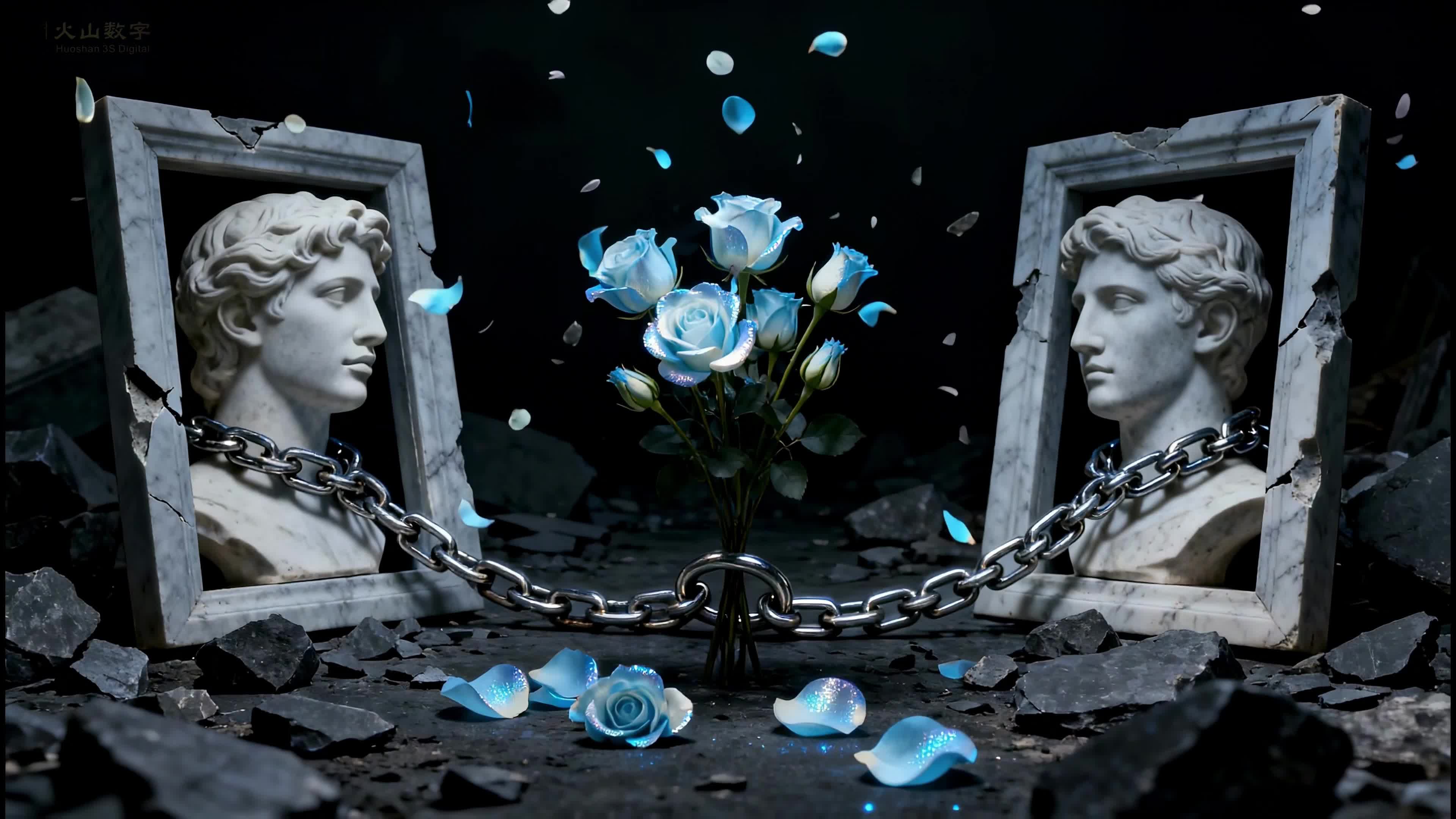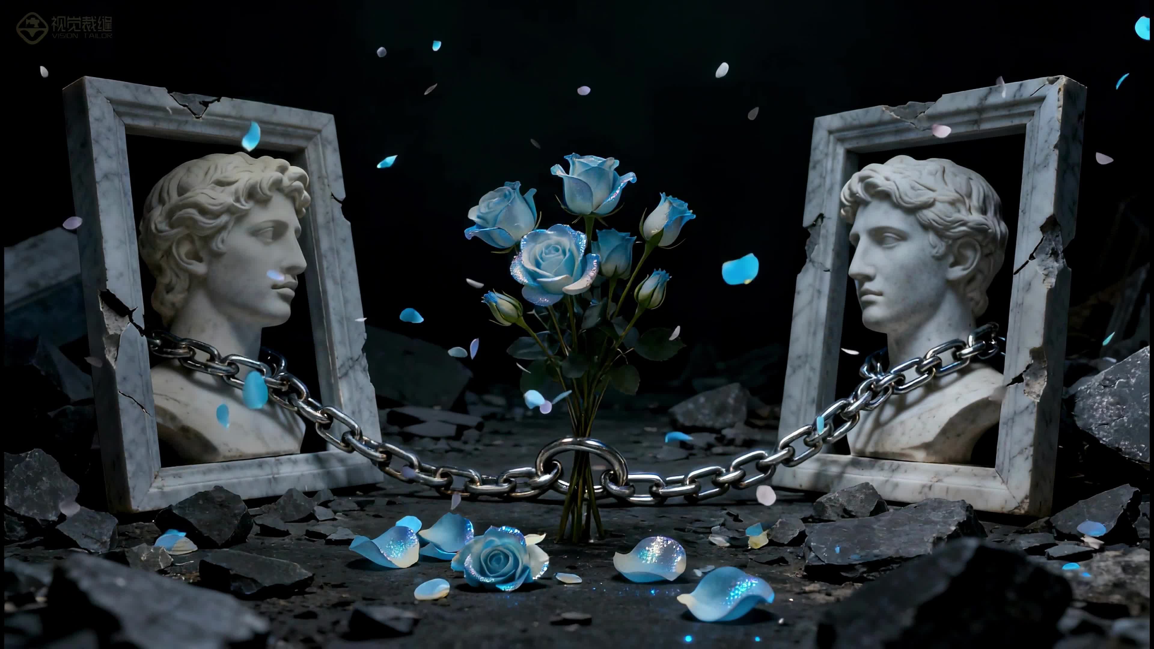 livehouse 空间 背景 雕塑 欧美 玫瑰 蓝色 白色 灰色 框架 舞美 温和 温柔 艺术 悠闲(此素材仅供学习参考,禁止商用)