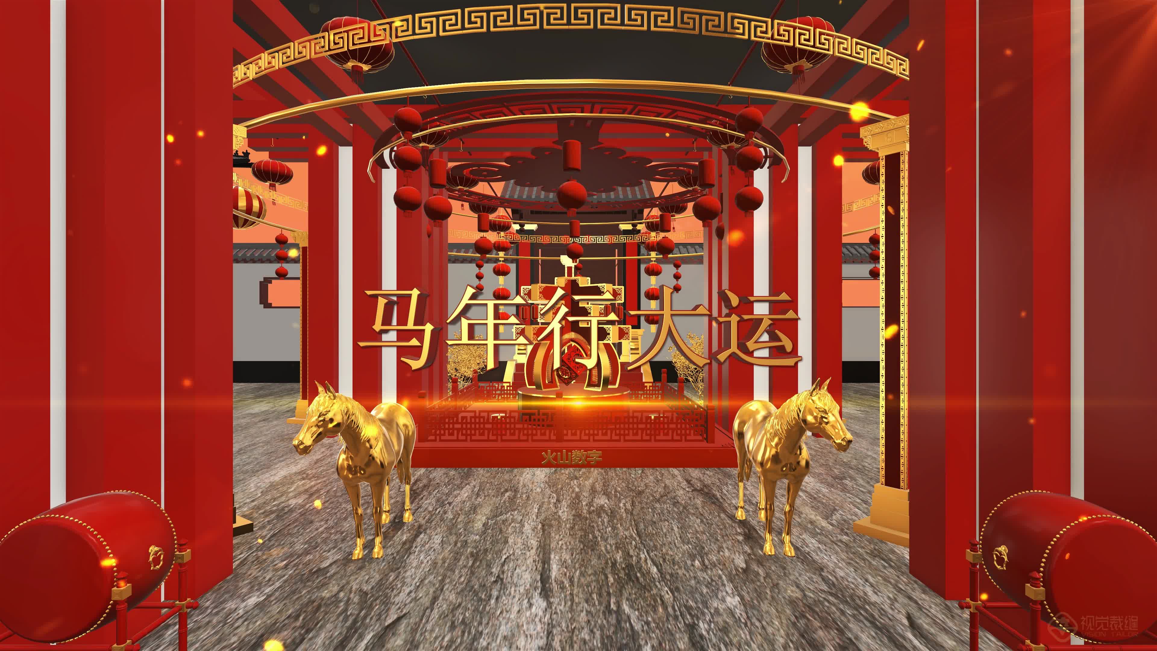 定制 新春 节日 空间 场景 金色 背景 马年 喜庆 2026 新年祝福 春节祝福 2026马年 金色春联 福字 满屏(此素材仅供学习参考,禁止商用)