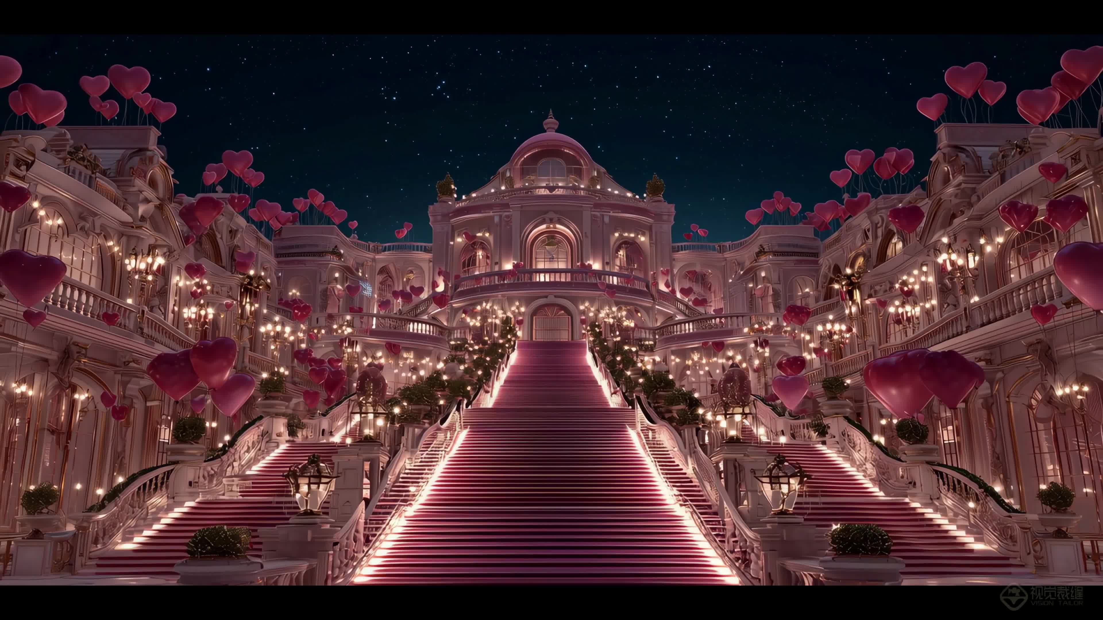 宫殿 T台 抒情 舒缓 温柔 温和 安静 空灵 悠闲 温情 轻松 紫色 红色 渐变 浪漫(此素材仅供学习参考,禁止商用)