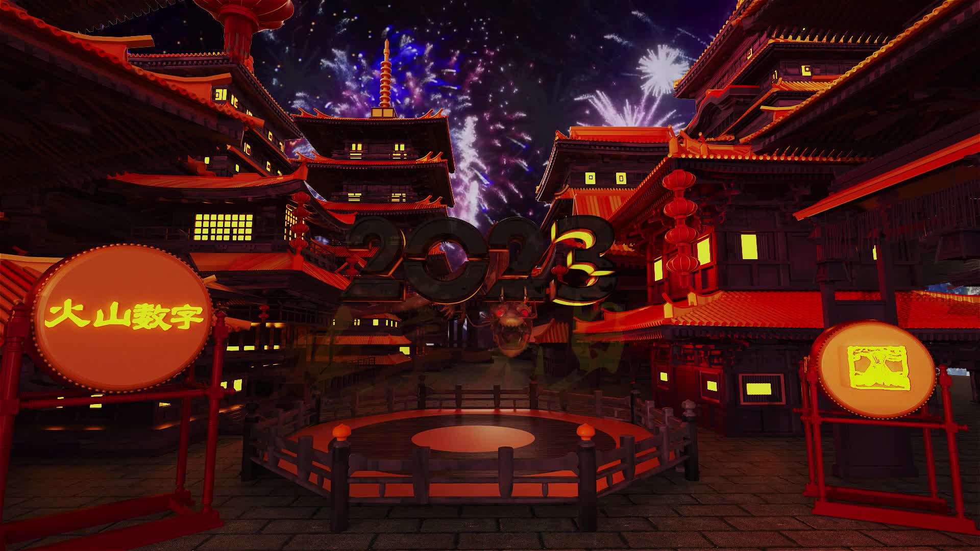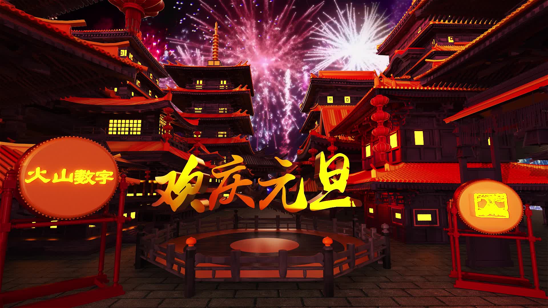 元旦 节日 喜庆 气氛 烟花 龙年大吉 定制 logo 古风 建筑 烟花 鼓(此素材仅供学习参考,禁止商用)