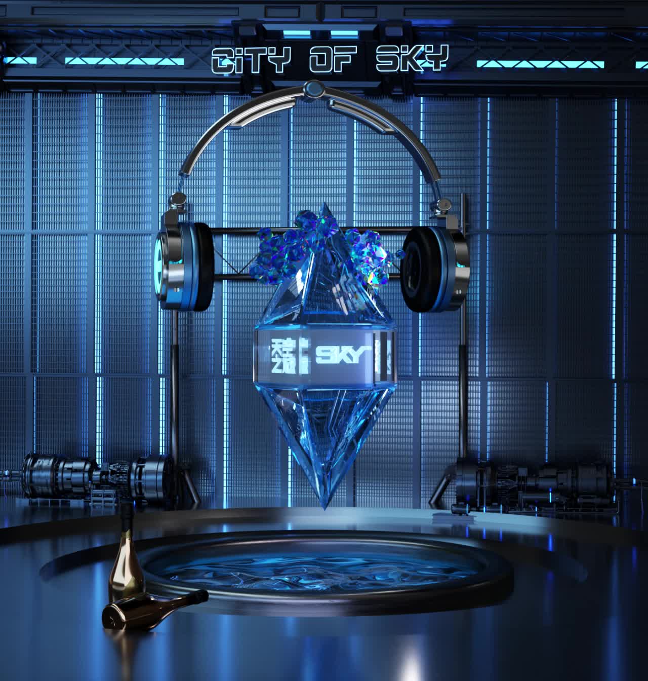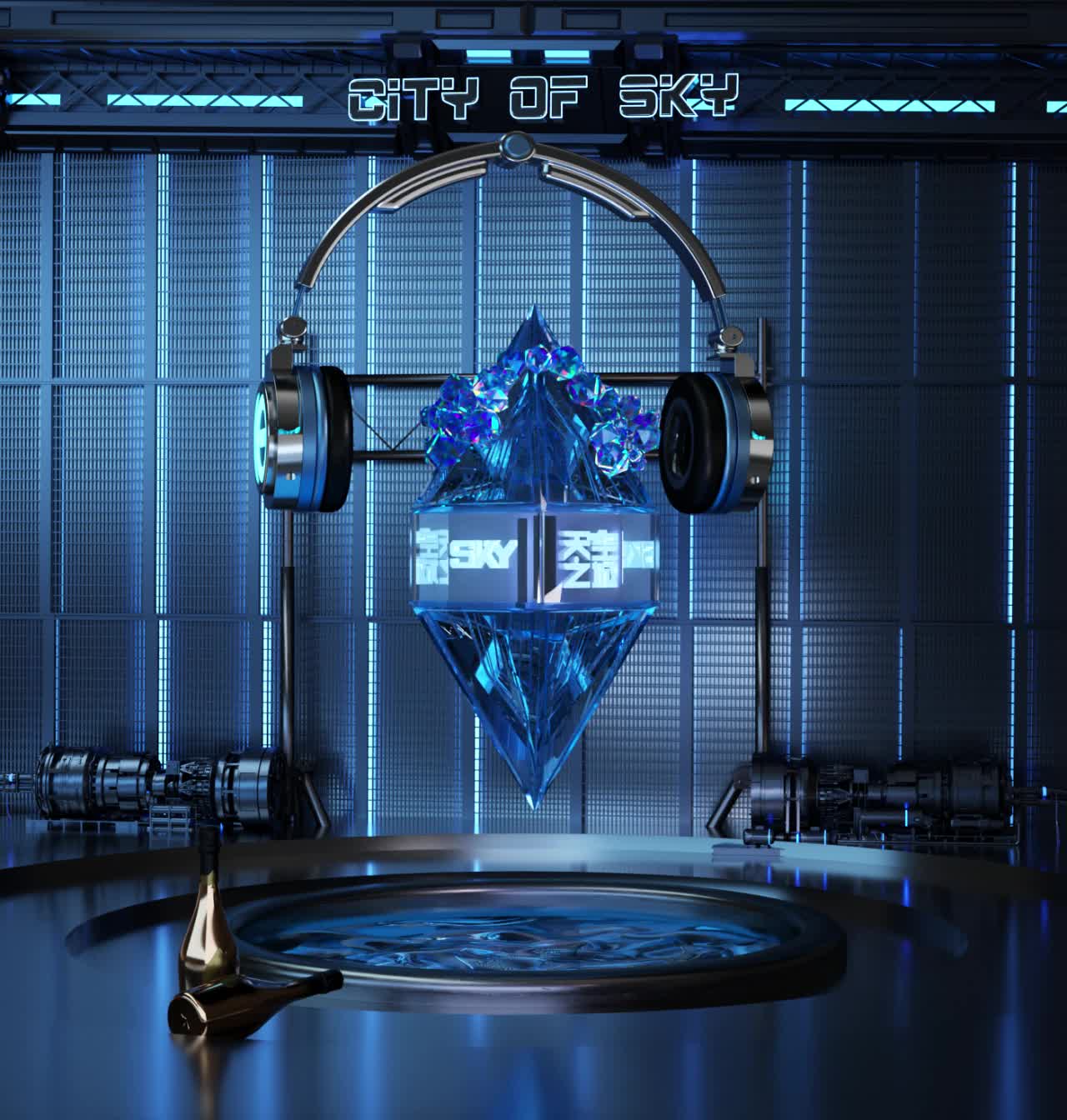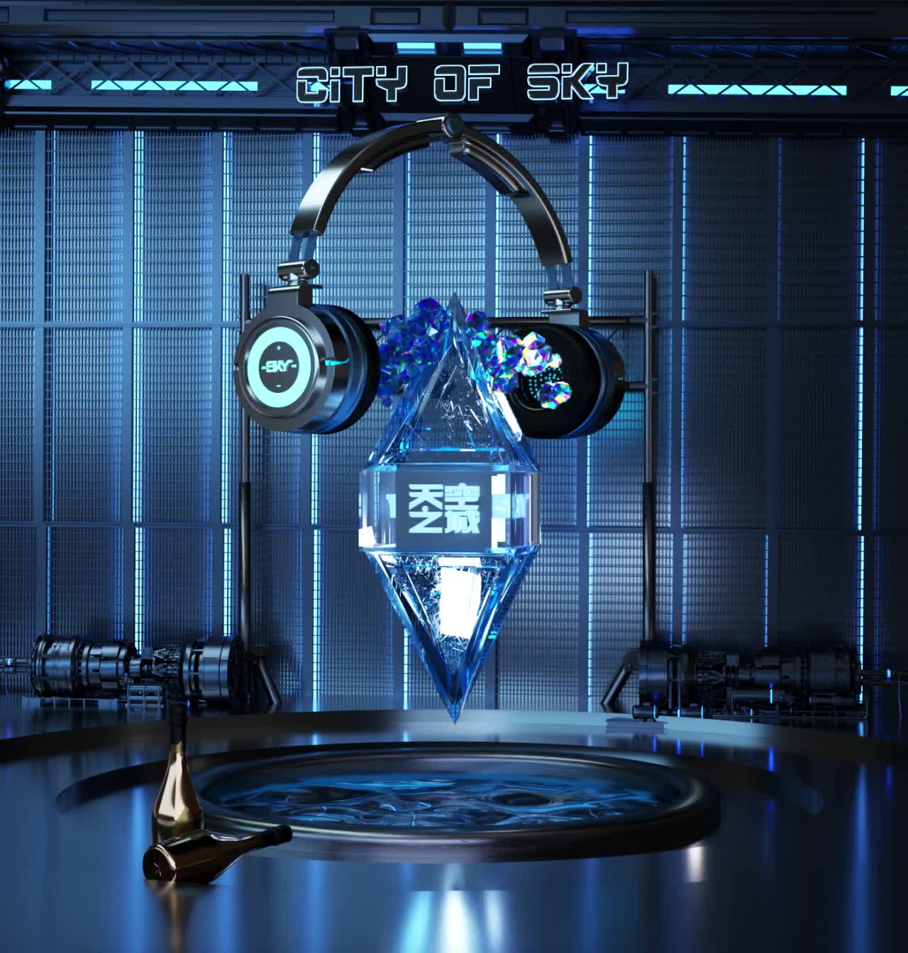 冰蓝色 耳机 定制 柱体 悬浮金属质感 科技 科技感 未来 未来 高级 大气 金属感(此素材仅供学习参考,禁止商用)